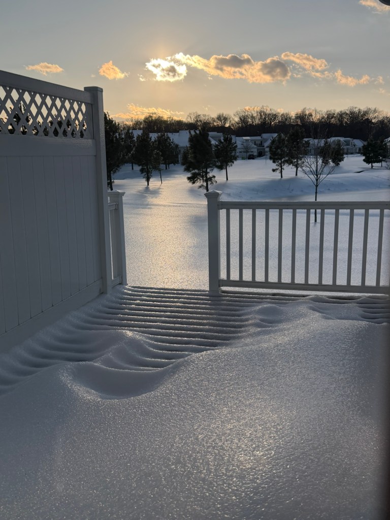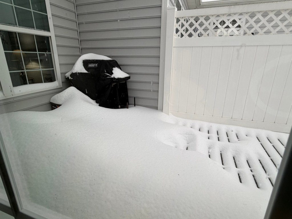 We got about 6 inches of snow but it’s been sleeting for hours. I didn’t even venture outside. Just took pictures from inside