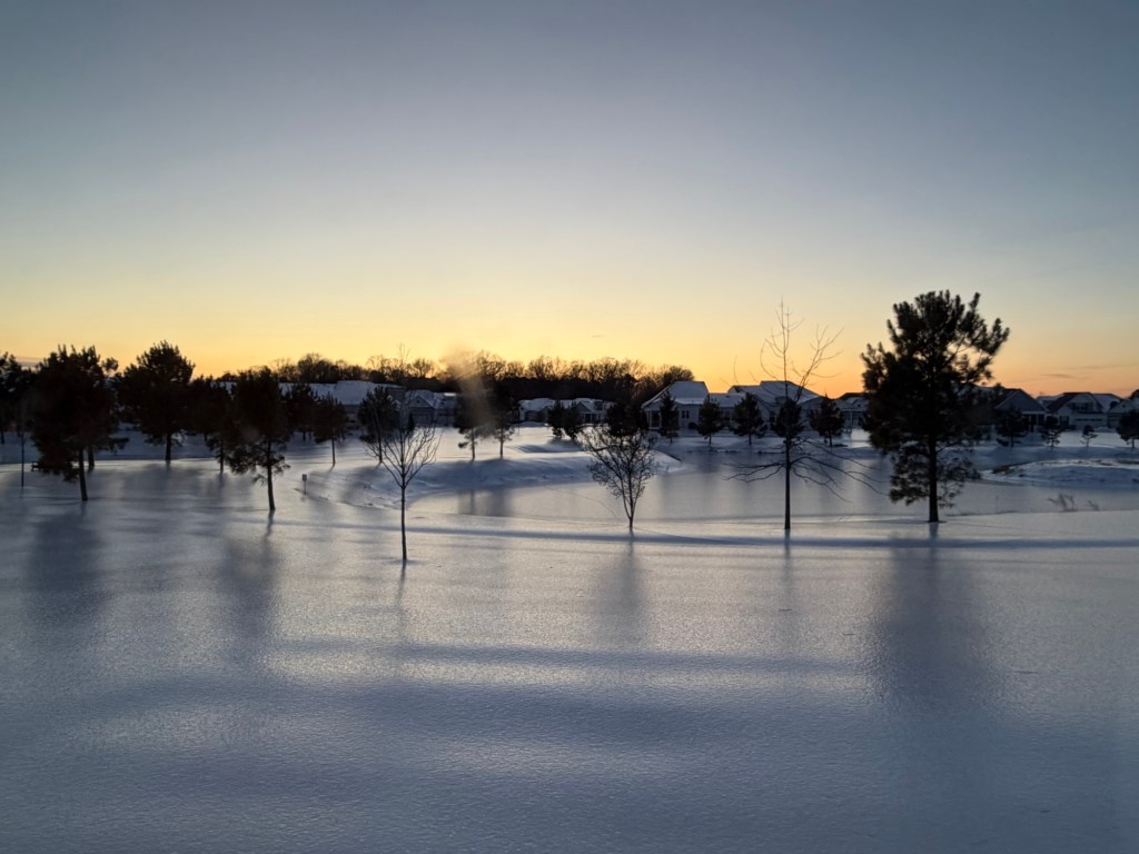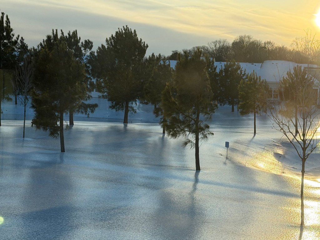 Still very cold so snow is not melting so it’s still a big sheet of ice