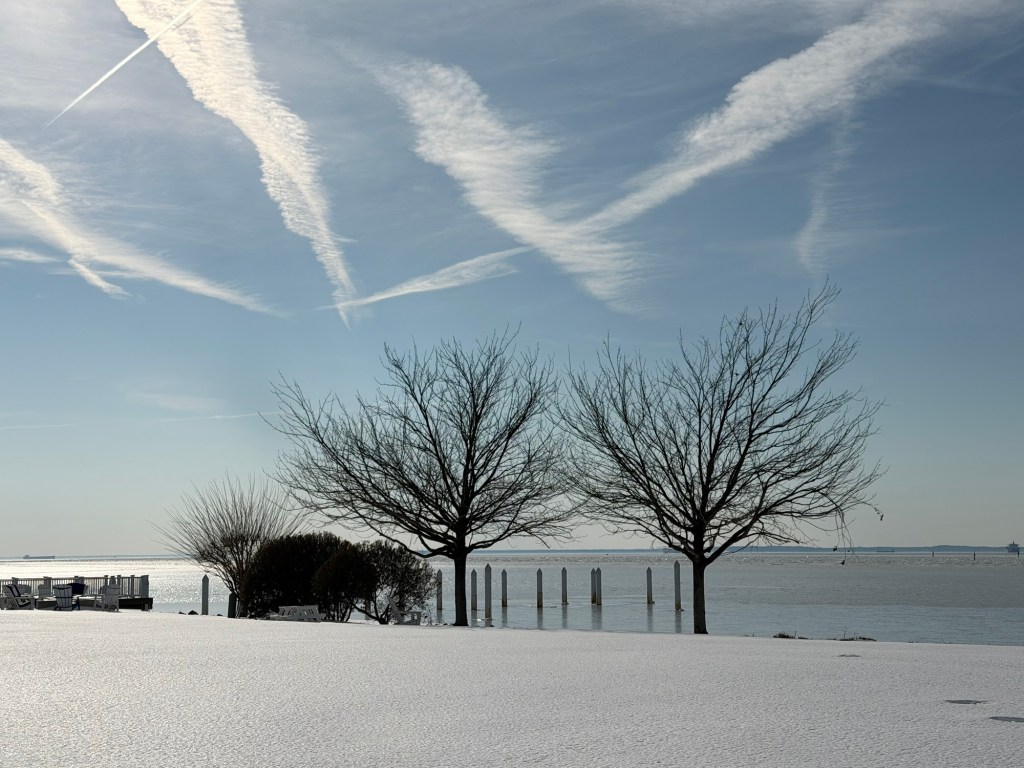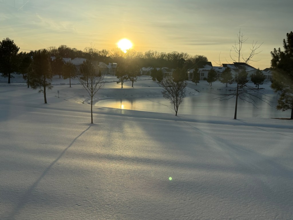 The wind finally died down but there is still ice and snow around. But we were able to walk on part of the path today. It’s supposed to be in the 40s for the next couple of days so there should be a lot of melting
