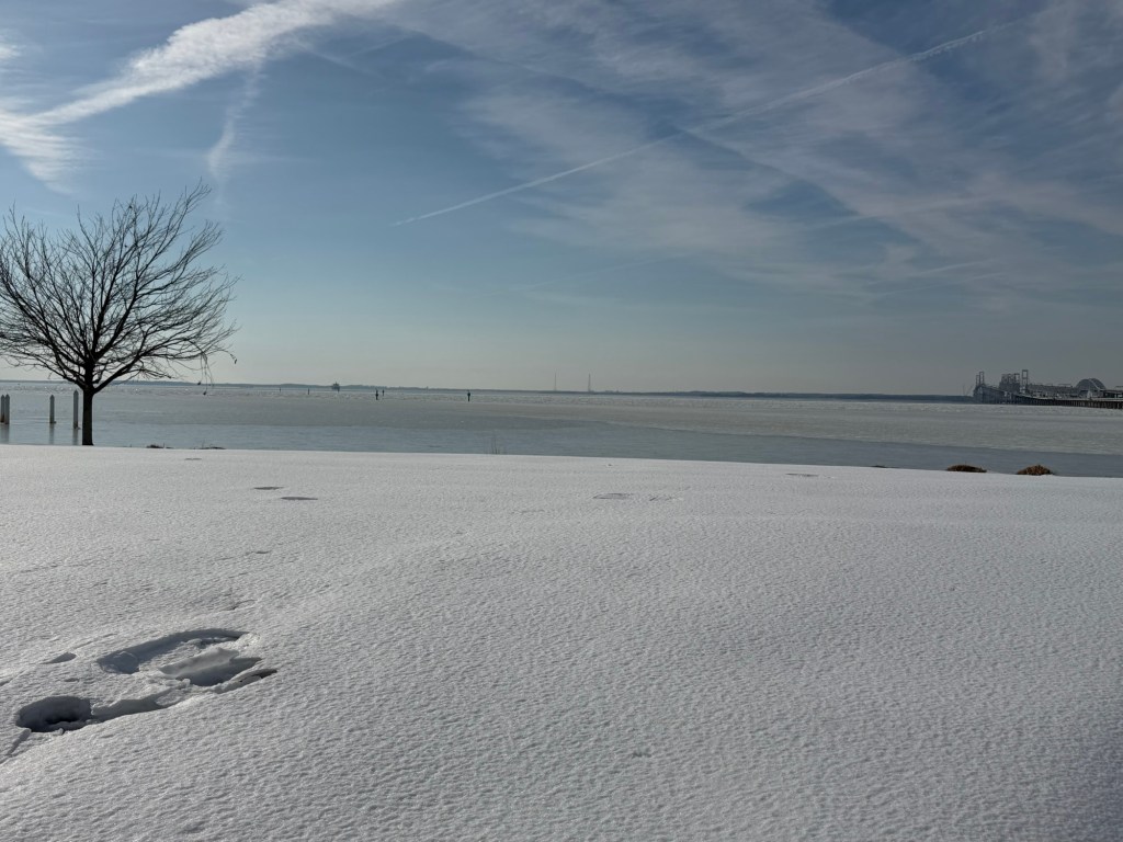 Went to Annapolis for dinner and the Bay is almost completely frozen. Last time it froze was in 1976