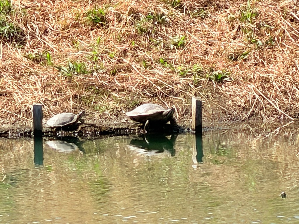 It warmed up later in the day and I noticed some turtles getting some sun by the island