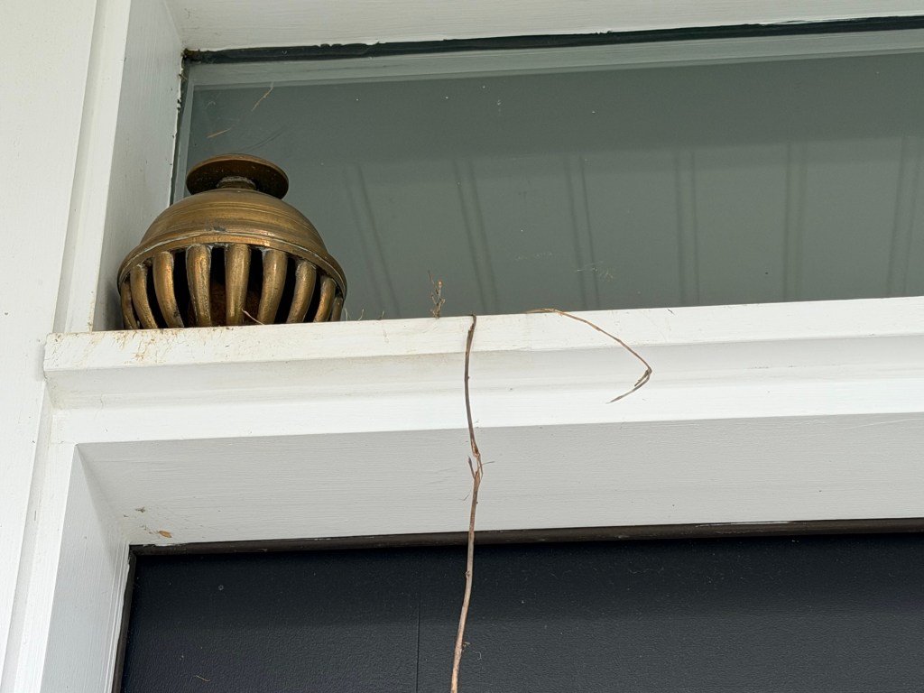 Yesterday when I went out to walk I noticed some straw on the porch so I swept it up. This morning when I went out to walk there was even more straw and I noticed a bird had been building a nest on ledge above the door.. So Ik knocked the nest down and swept everything up once again.