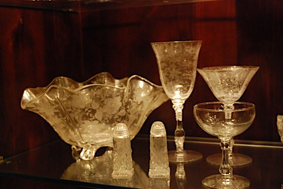It’s late and I don’t have a photo for the day.  So…  wandered around the house and decided to try taking a photo of the crystal in our hutch.