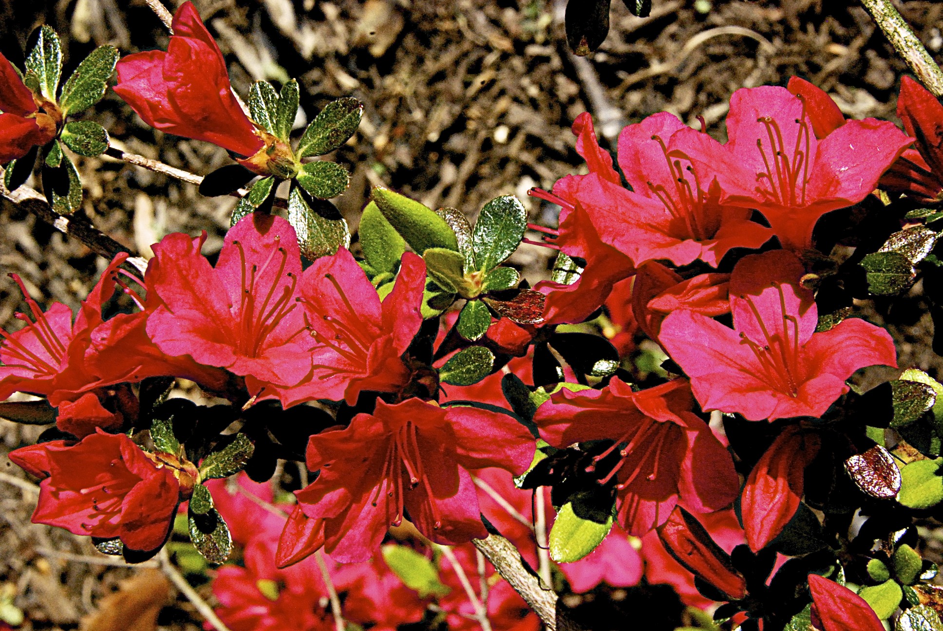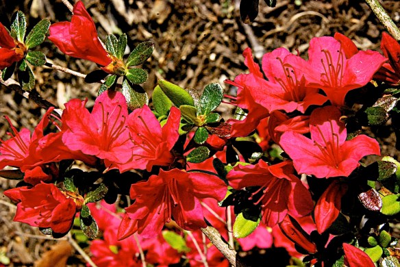 April 1, 2012 – Around the Neighborhood Posted on April 1, 2012 by lynmicphoto Reply Lyn and Michael's Photos 2012 Azaleas in our side yard – it’s only April 1st and they are blooming already!. The red ones are in full bloom while the white ones are just bus.