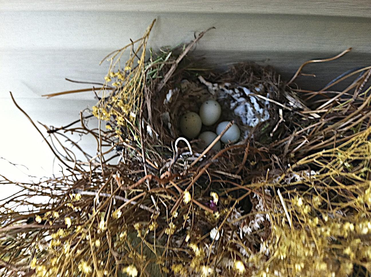 April 10, 2012 – Front Door at Home Posted on April 10, 2012 by lynmicphoto Lyn and Michael's Photos 365 While we were away for a long week-end momma bird built a nest and laid some eggs in the nest on the wreath on our front door Rate this:Share this: Click to share on X (Opens in new window) X Click to share on Facebook (Opens in new window) Facebook Like Loading...