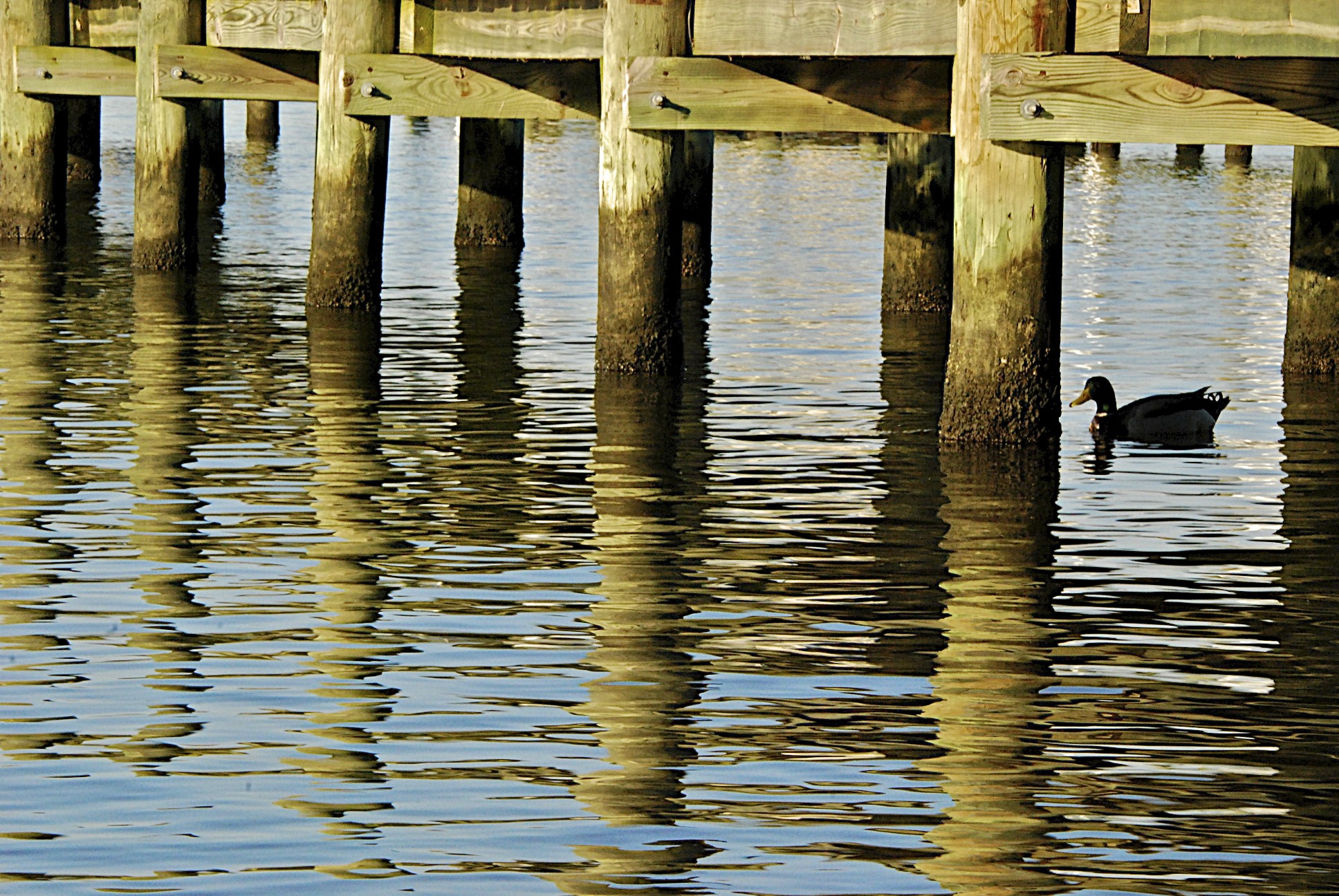 The humidity is finally gone – at least for a while so we went for a evening walk. I missed walking after dinner. Decided to try and take some more pictures of reflections on the water and this duck was nice enough to swim by.