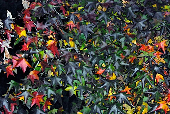 Busy today preparing for Frankenstorm. We brought in all the patio furniture, plants and anything that might blow away. Then we ran some errands and went to the movies to see Argo. Really good film The tree in our side yard is really beautiful – looks of colors. This picture does not really do it justice but it was late in the afternoon and it was dark and dreary so this one is the best.