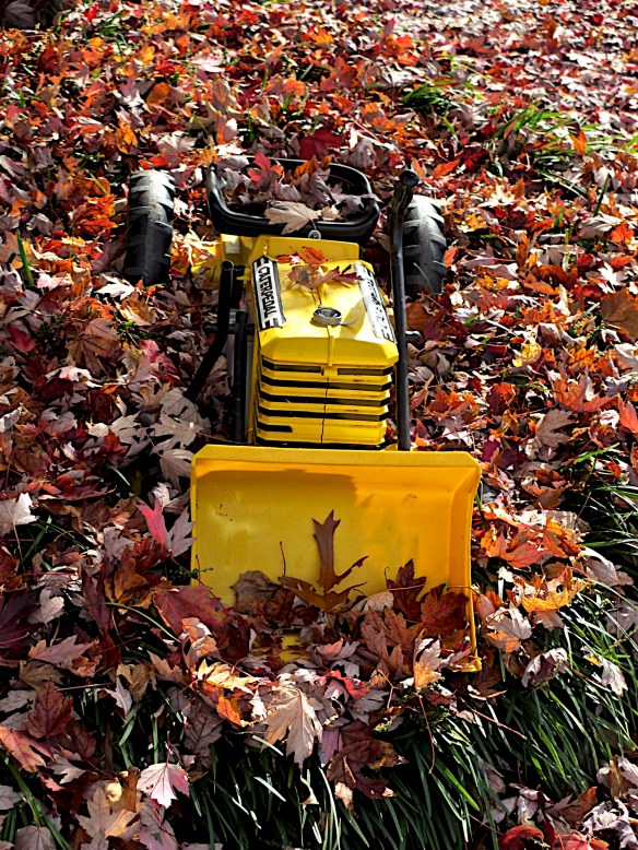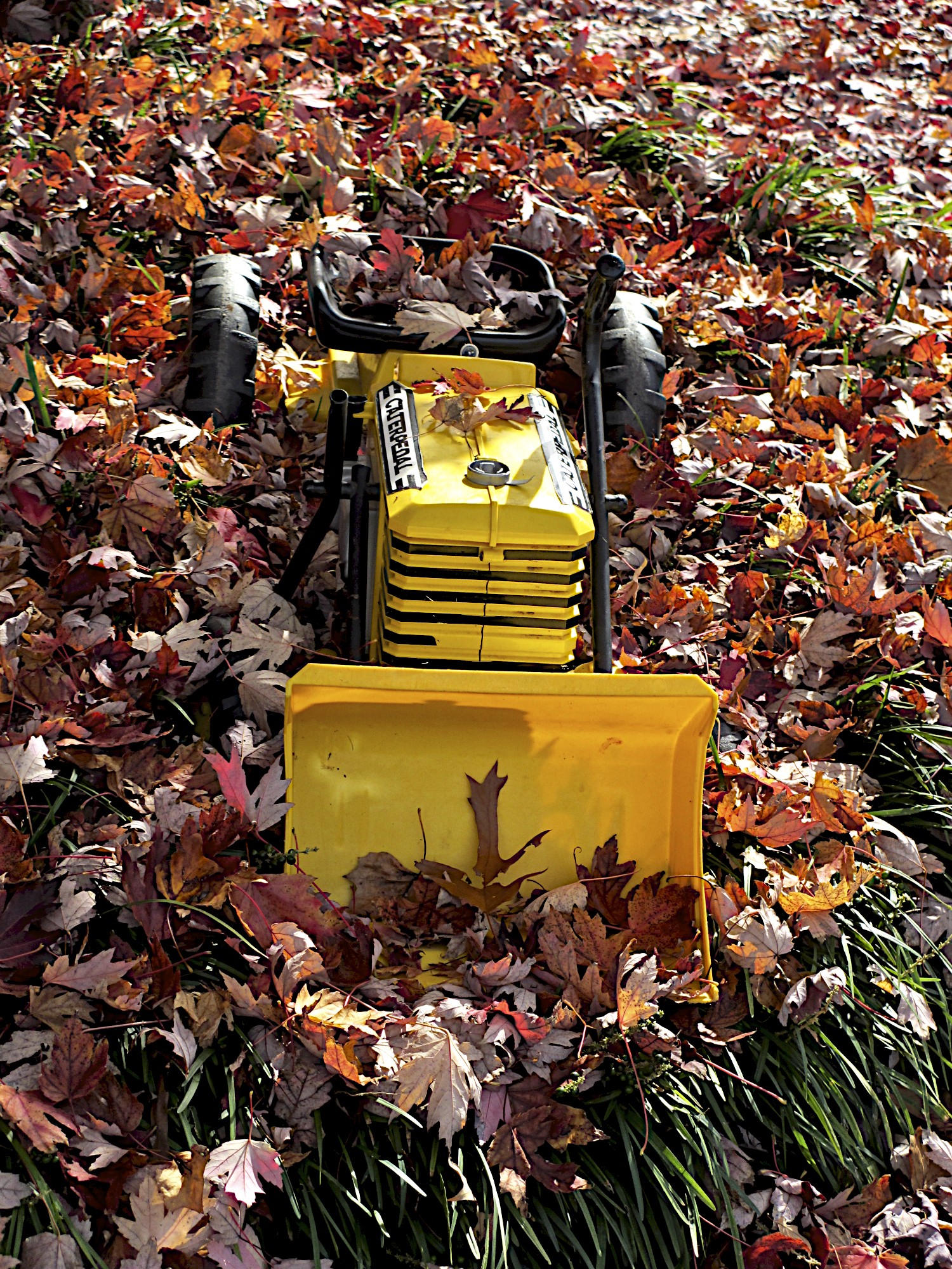 Took a walk around the neighborhood this afternoon. A lot of the leaves have fallen already and the wind picked up some today so even more leaves were coming down. Spotted this toy tractor in a neighbor’s yard and thought wow that’s another way to pick up all these leaves.