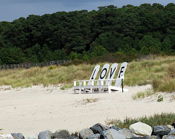 Love is everywhere! We drove to Kiptopeke State Park. Got out and walked over to the water’s edge and started to take pictures and the camera started acting up and would not auto-focus. Oh no say it’s not so. We tried a few things but no luck. Luckily I had my small Canon point and shoot with me and took a few pictures. When we got back to the Inn we tried charging the battery but that’s didn’t work. Then we sent an email to Nikon but have to wait for them to respond and it could take 24 hours. Hope it’s something small – like we just need a new battery.