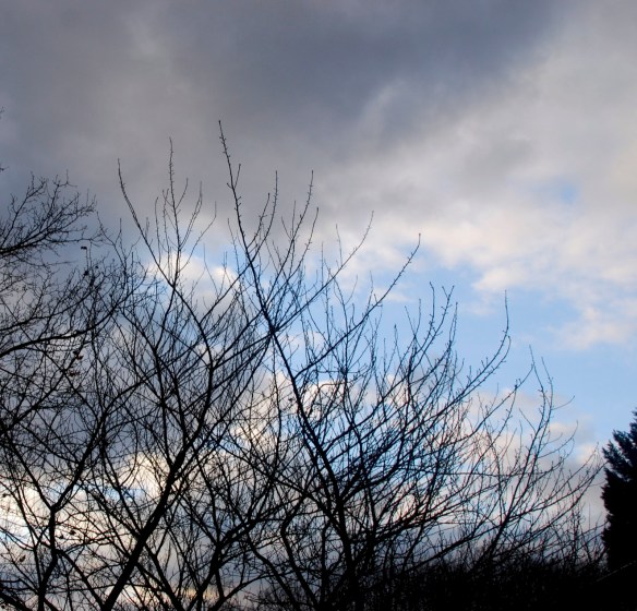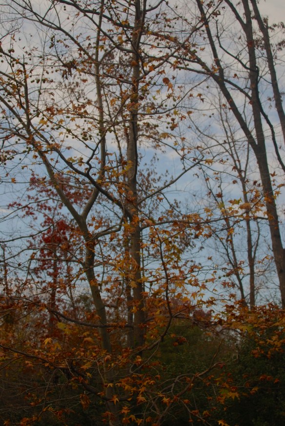 A cold front blew in during the night Most of the leaves are now on the lawn and brrrr it’s much colder. It was overcast most of the day but did spot this little bit of blue in the afternoon.