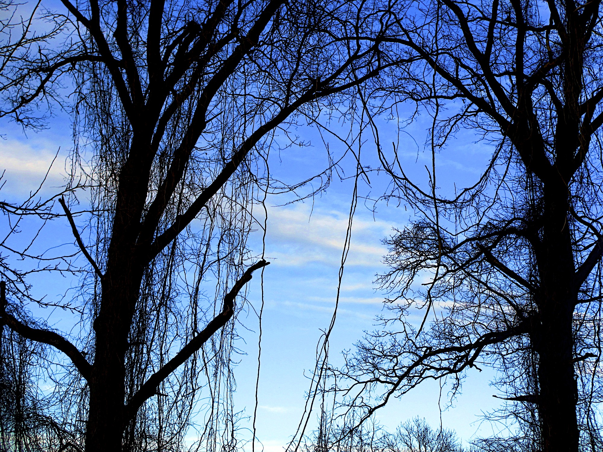 Didn’t have any great photo ops on Monday so on the way home Tuesday night I noticed the clouds were amazing so took a detour and stopped at Kinder Park. Took a bunch of pictures and decided to use one for Monday and one for Tuesday. Liked the clouds between the trees and the vines just seemed to be going every which way. Thought it was something different than the usual tree silhouettes