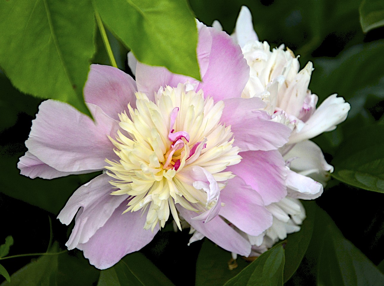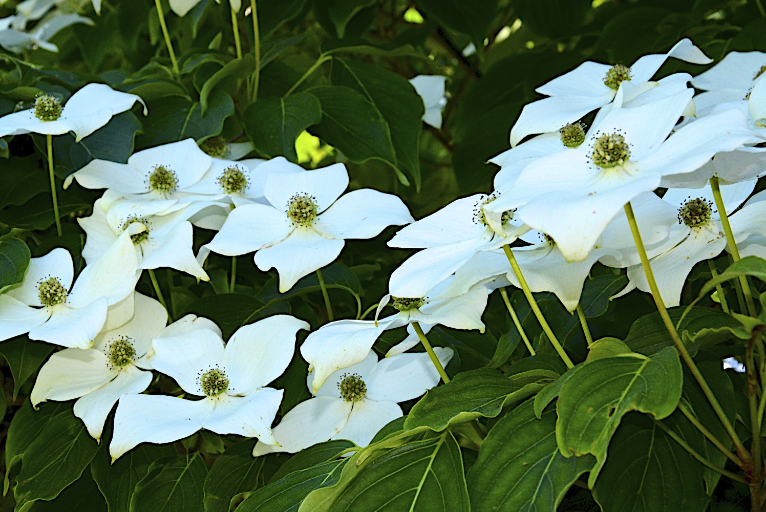 How can this be the end of May. Where has the time gone. I did not intend to post another flower picture today. Traffic was a mess coming home tonight so decided to go the back way. I had to stop for a red light and noticed a lot of unique things in front of an antique store. I made a quick left hand turn and ended up parking by the small park in town. When I got out of the car some flowers caught my eye and I walked inside the gardens. Did not realize that there was a small pond and a little waterfall. Took a bunch of shots but was not happy with them. Lighting was not right – will have to stop by another day at a different time of day. Then I noticed this tree and since I am trying to use the camera in manual mode and working on depth of field I took a bunch of pictures. Could not decide which one of these two I liked the best. Your thoughts.