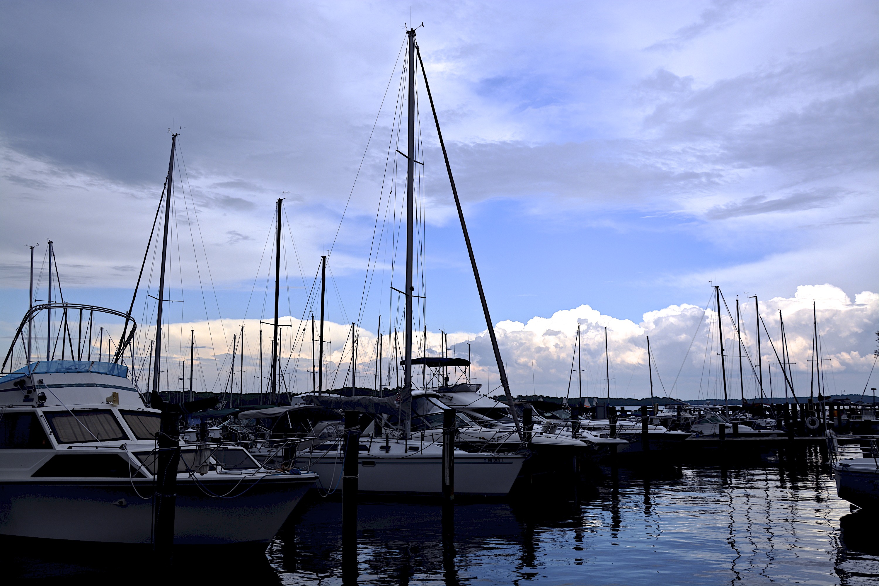 Strange day today – one minute it was overcast and then the next minute it seemed to be clearing. When it was close to quitting time, the sky started to darken and I got a text message for a severe thunderstorm warning. Decided to head home and try to beat the storm. By the time I got home the skies were blue but there were still clouds. So I decided to head to the marina and see if I could get some good shots. Wanted something a little different and have always had good luck at the marina.