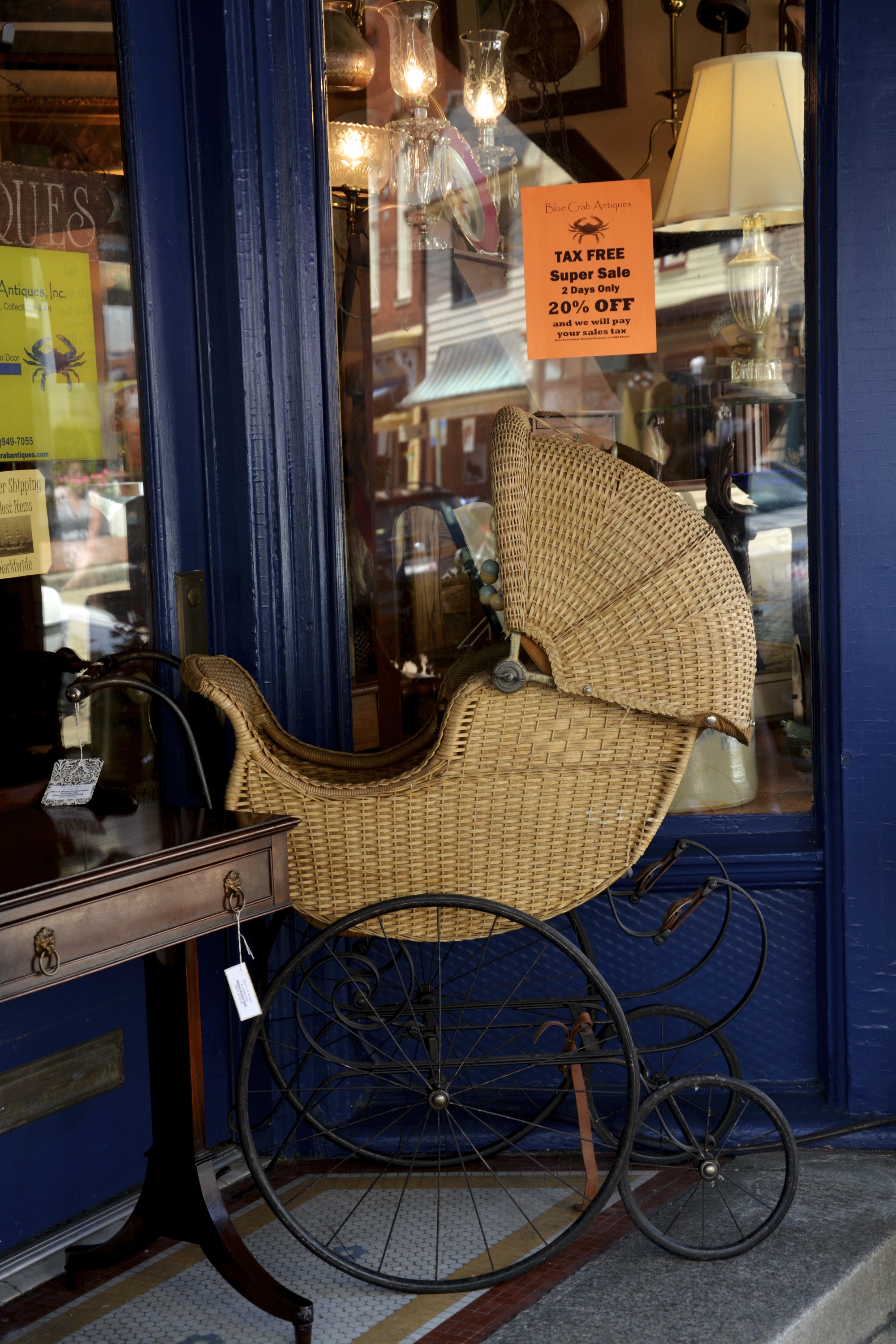 Posted on August 4, 2013 by lynmicphoto Reply Lin and Michael’s Photos Spotted this old baby carriage outside an antique shop. The one wheel is huge – they sure have changed