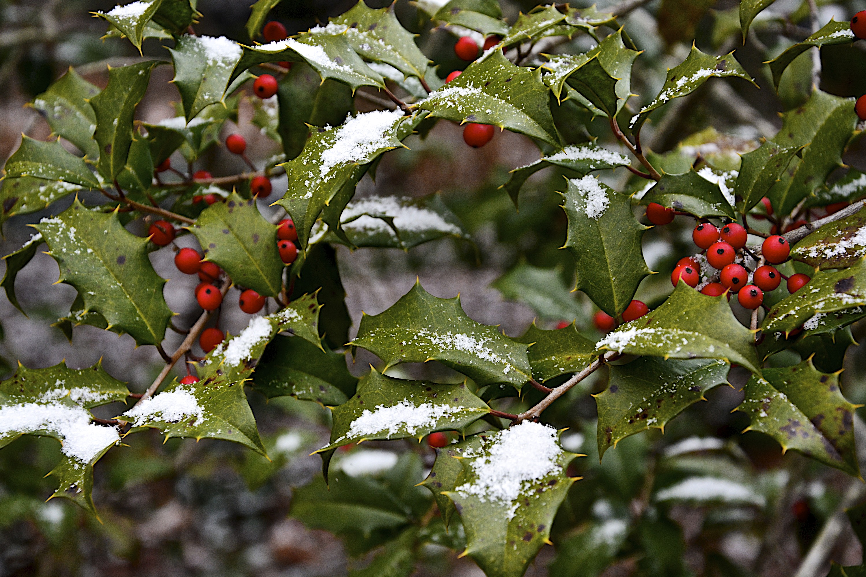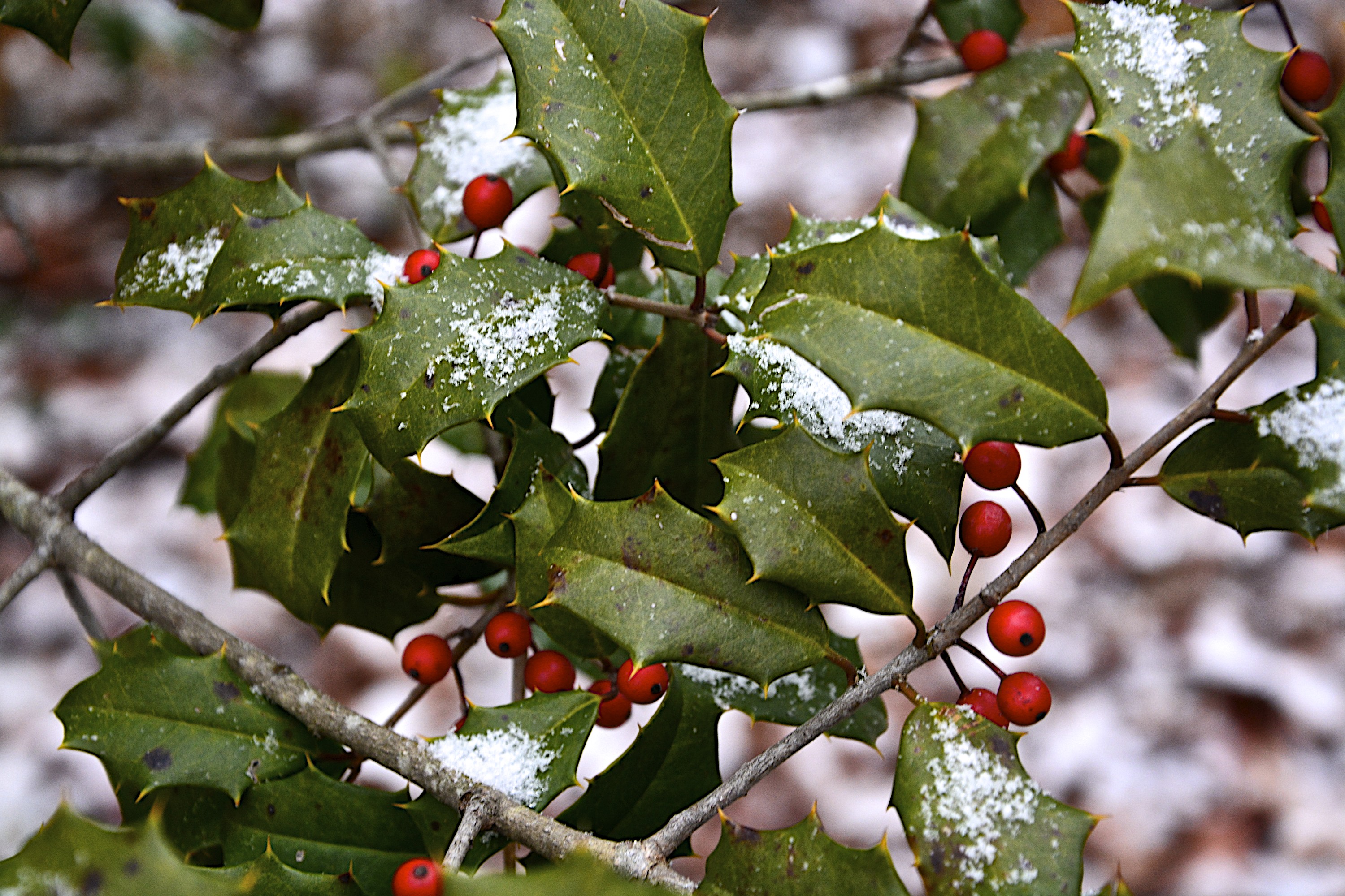 We actually got some snow – only about an inch or so and now it sounds like it sleeting. I was hoping for more snow but not this time. North and West of Baltimore got a lot more snow. Managed to get a few snow pictures. Could not decide which holly picture I liked the most