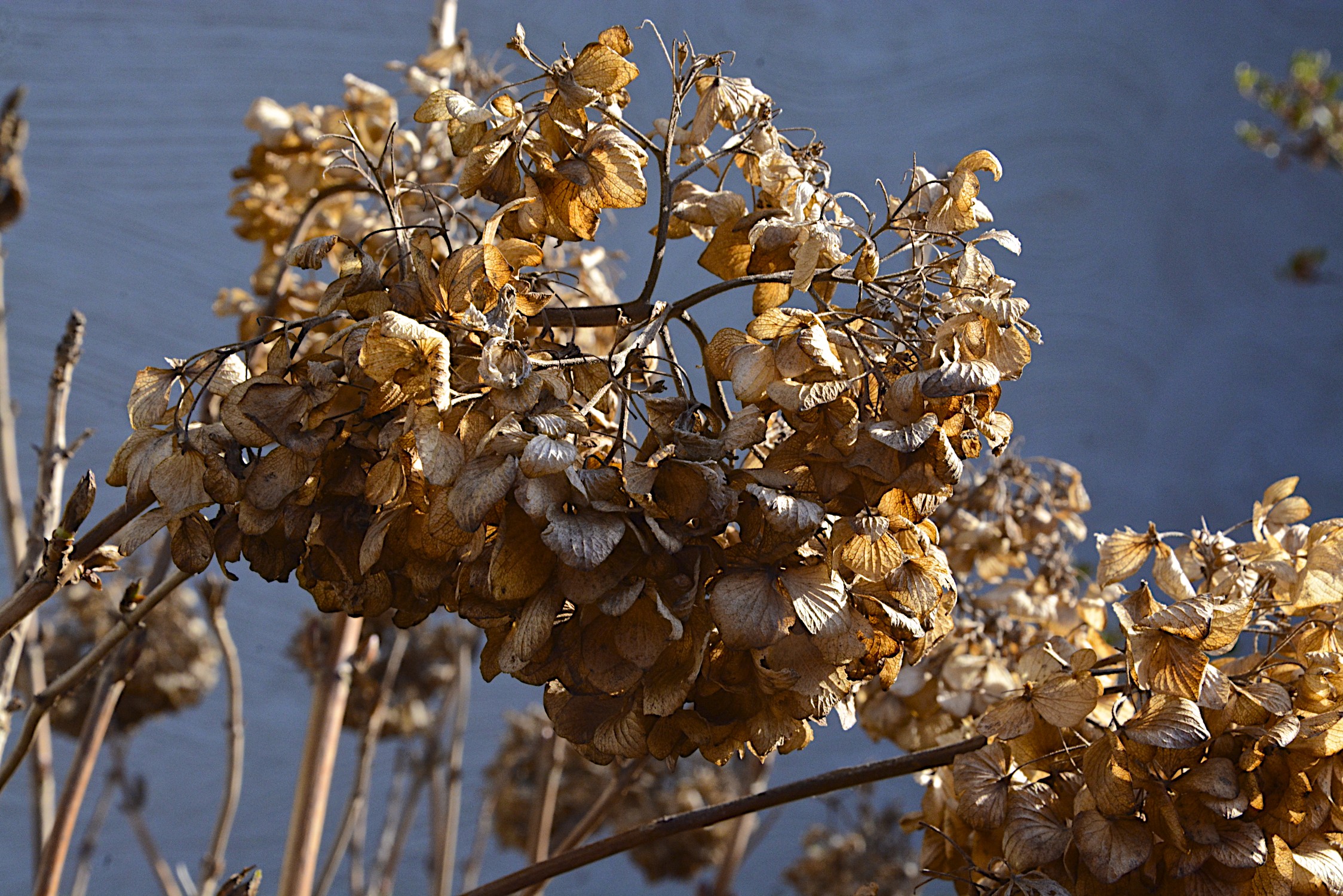 Busy day today. Working on a big project for work that has a deadline next week This afternoon I had to take a break and get away from my computer for a bit so I walked around my yard to see if I could find anything for a photo. The flowers are all dried up but they still look pretty