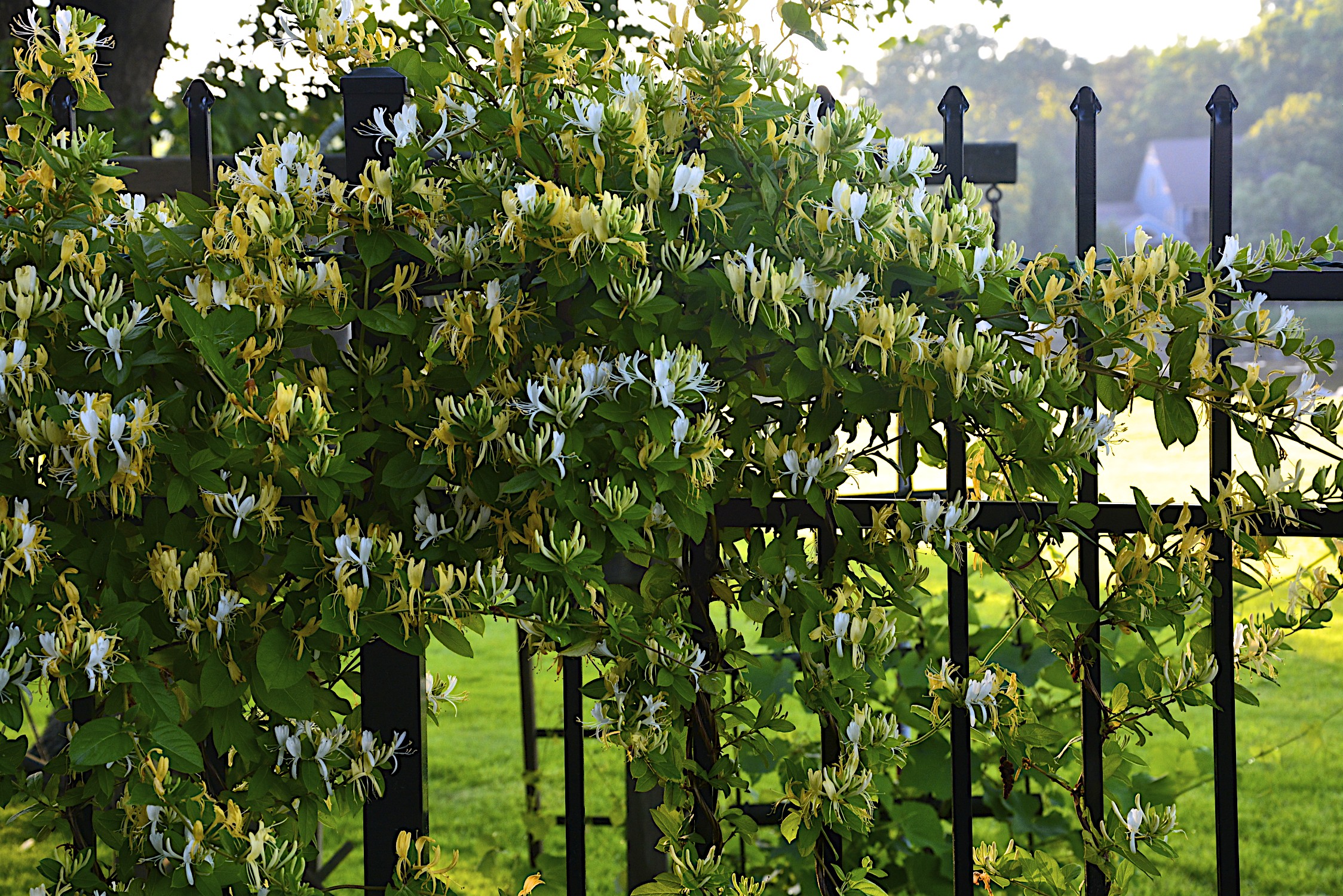 June 3, 2014 Posted on June 3, 2014 by lynmicphoto 1 Lin and Michael’s Photos This bush is really spreading and almost covers the fence. I like the flowers against the iron