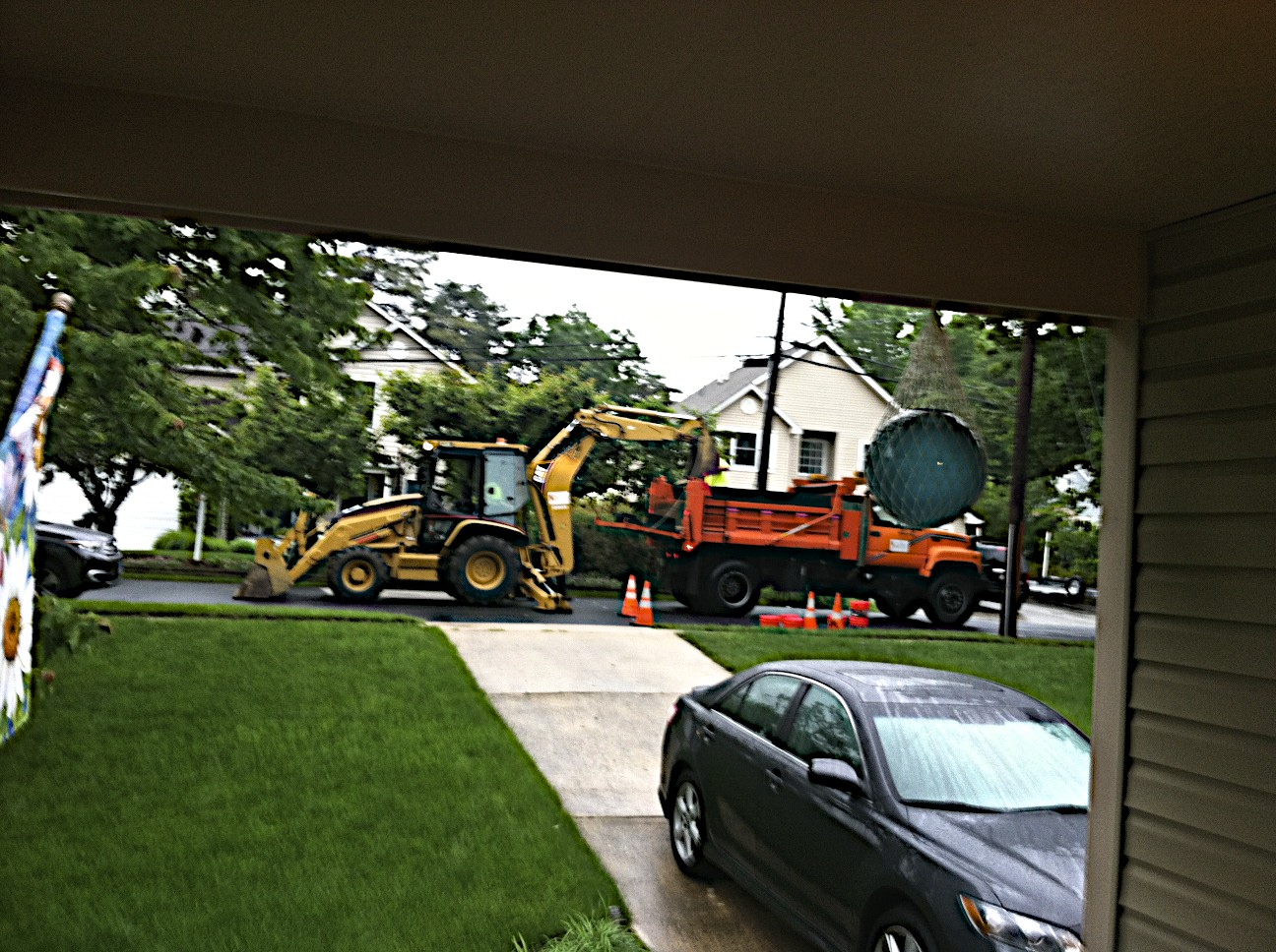 Monday night I happen to look out the front window and noticed a bunch of my neighbors and a pickup truck with flashing lights in front of the house. I went downstairs and told my husband something is going on in front of the house. We went outside and said what did we miss. They said a small sinkhole popped up in the street and they called the county about it and they were there to patch it. They put about 4 buckets of hot tar down the hole and then drove over it to flatten it down. Wednesday afternoon when my husband went to volunteer he called me and asked me to go look at the patch and see if it had sunk and that I had better move the car. Sure enough the hole started to sink again. So I called the county and they came back out again and said you have a serious problem here – we can’t do anything today but we will try and figure something out and get back out her tomorrow. Then he told me that sink holes were popping up all over. A little while later we heard that a major state round near Annapolis had a sink hole and they had to close the road to repair it. What is going on in Maryland. Then 7 o’clock this morning I hear some noise outside and discover the county is back. They installed a metal plate in the road until they can get back . I grabbed my cell phone to take a picture – I should have used my good camera but it was early and I hadn’t had enough caffeine. Stay tuned