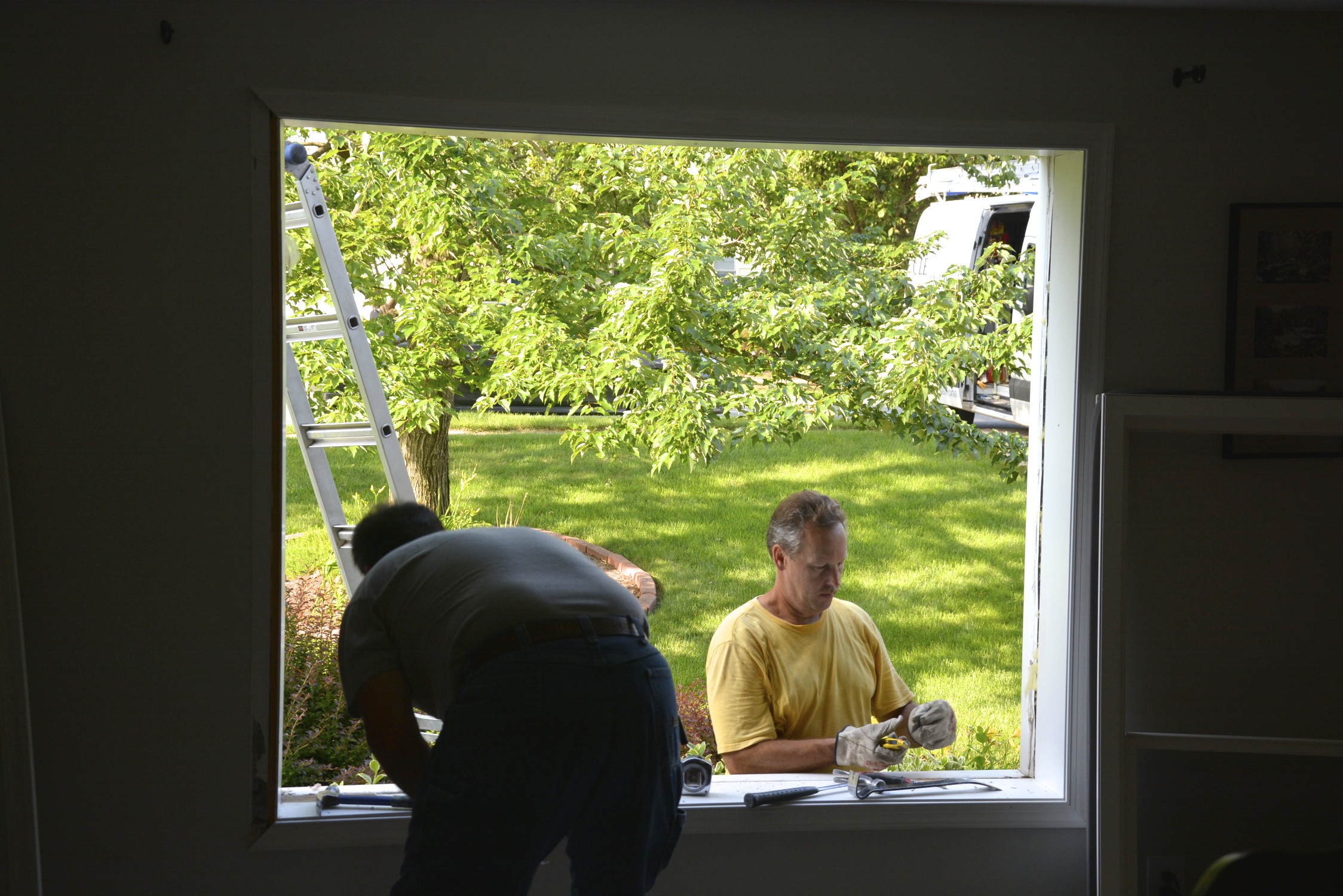 A new living room window. Buying new windows is almost as bad as buying a car. Michael did a lot of research and we had a lot of contractors stop by the house for their sales pitch and estimates. Finally settled on Clearview Windows and Siding – one of the first contractors we talked to. The guys arrived early this morning and installed new windows on the front of the house. They were very professional and did a great job – now let’s hope the windows do their job and live up to the hype