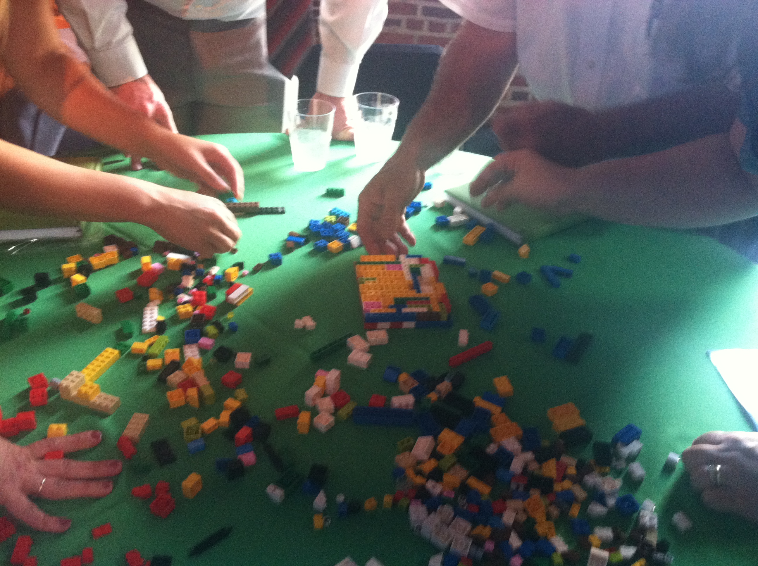 We had our annual awards dinner this afternoon. We had something new this year – a team building exercise. When we arrived there was a big gift bag on each table. Once we got settled they told us to open the bag and we found a big box of legos and we had 30 minutes to build something. Since it’s so close to July 4th we decided to do a flag. What you see is the back of the flag which we are re-enforcing so we could flip it over. We didn’t win but had a lot of fun.