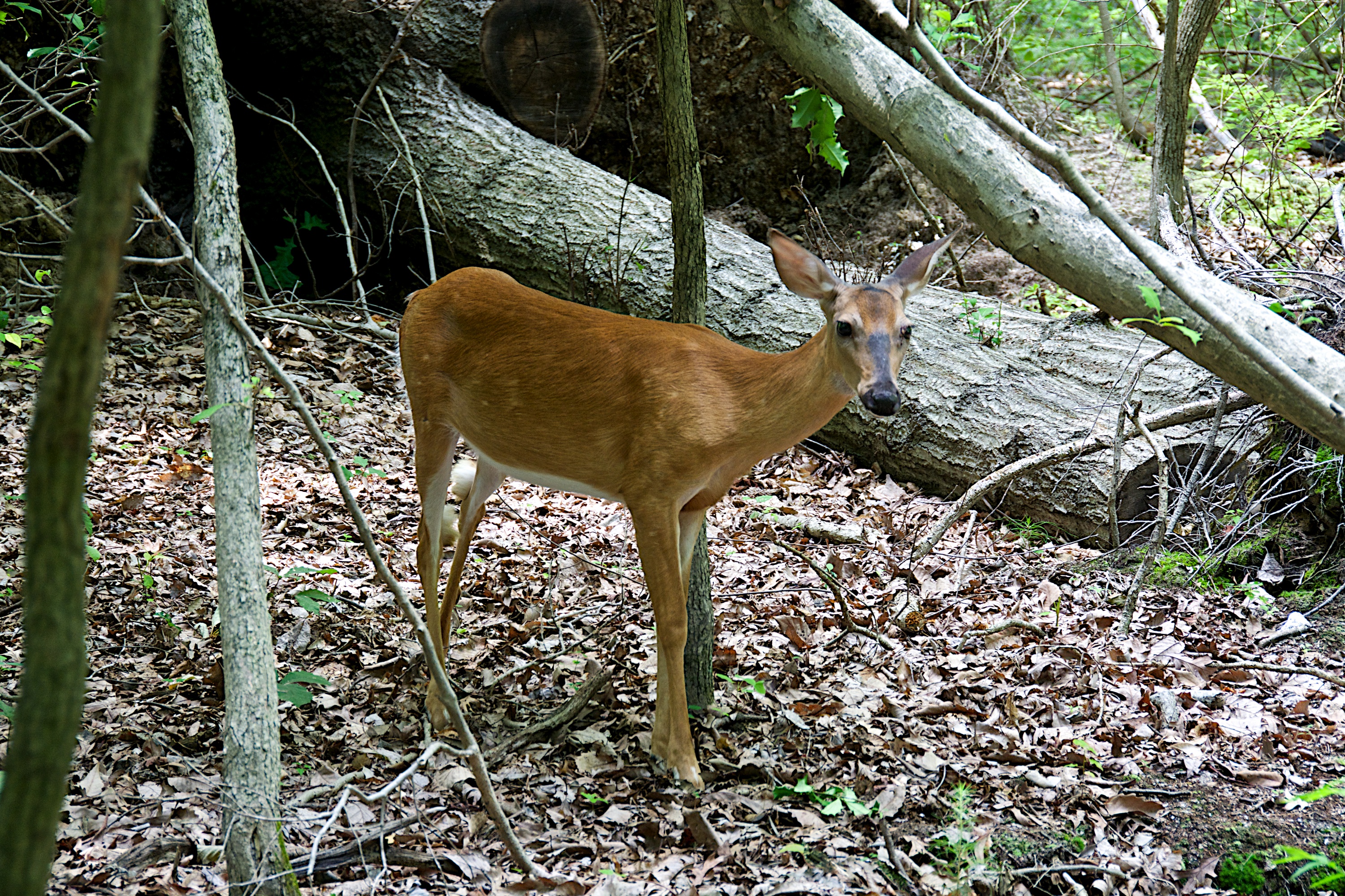 We went to Downs Park today. We noticed a deer on our left and tried to get a couple of photos but we were not close enough so we decided to walk on – we had only taken a few steps when we noticed a deer on our right and this one was much closer. Managed to get a couple of good photos. The deer seem to have gotten used to people over the years and didn’t run away.