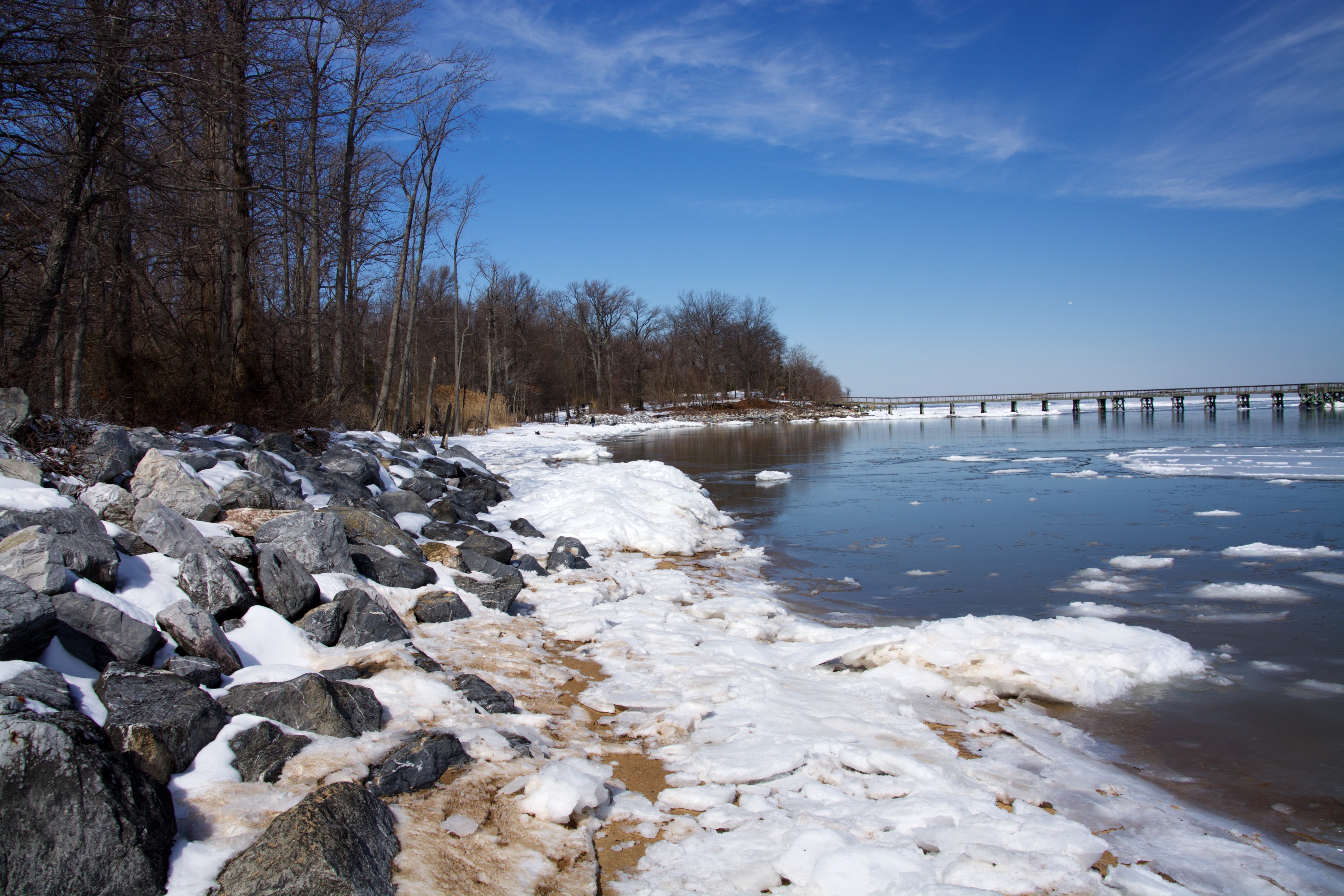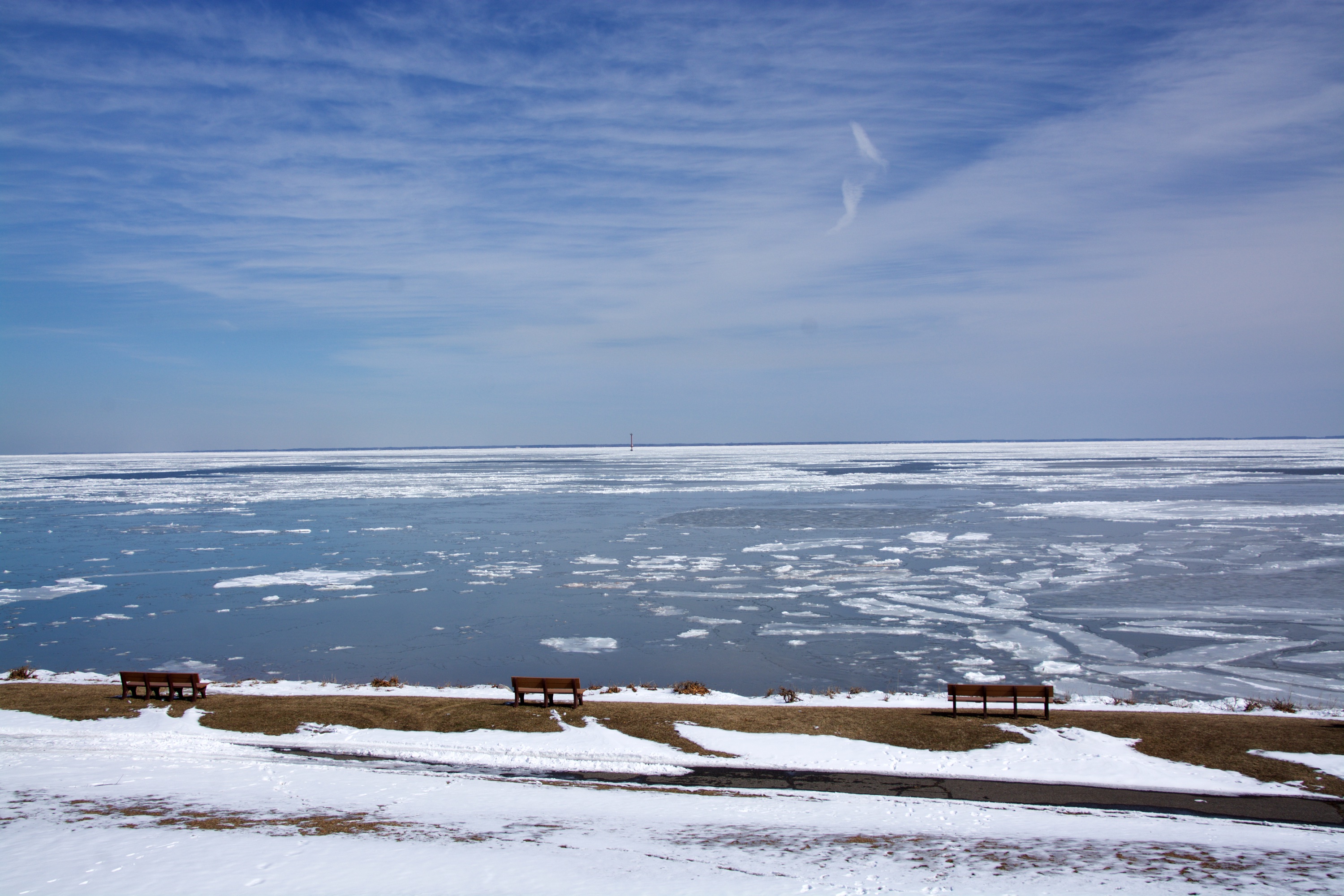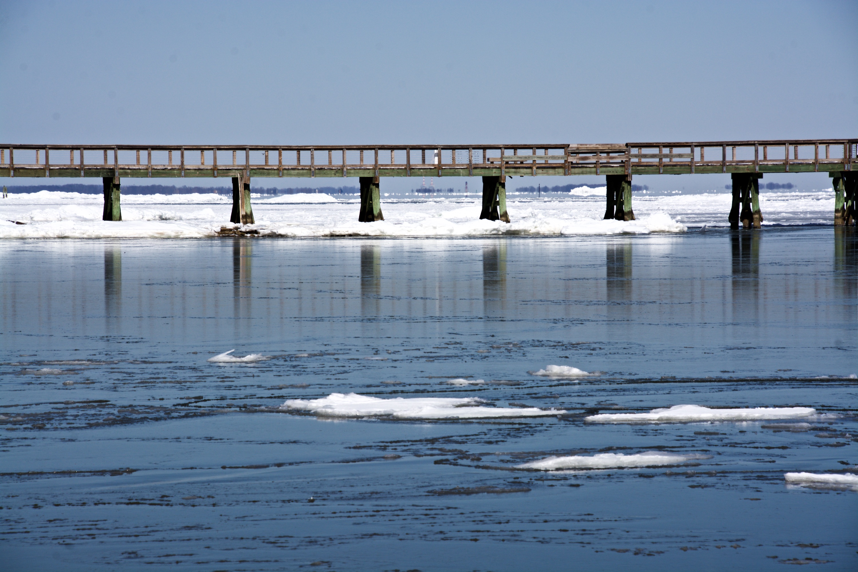 We have never been to Downs Park in the winter when there was snow on the ground or ice on the Bay so decided to head to the Park today. The temperature was around 32 degrees and as long as the wind was not blowing it wasn’t bad outside The last time the bay turned to ice was in 1977 and we did not live in Maryland at the time. Lots of great shots and hard to decide. Snow and ice in the forecast for tomorrow morning so winter is not done yet so I guess March is going to come in like a lion and out like a lamb