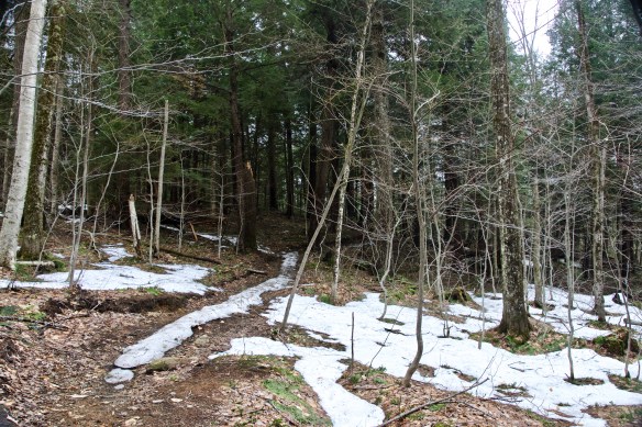 Decided to head back to Hapgood Pond. This time we wore our hiking boots so we could walk around the pond. Good thing we did – there was still snow and ice on the trail.