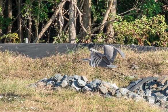 Spotted the blue heron from the sun room and grabbed my camera. He really blends in well with the fall colors on the island. There are strings across the pond to discourage the geese but the heron doesn’t seem to mind them. Thank goodness
