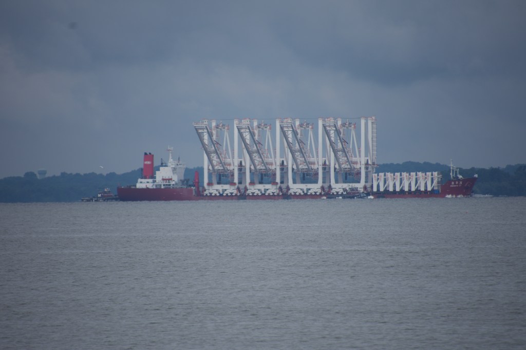 The Zen Hua carrying four massive cranes that will be installed at the Port of Baltimore. The bridge was shut down for 30 minutes so the ship could sail under the bridge. There was only about 10 feet clearance. There was a big crowd of people on shore watching the ship sail up the bay
