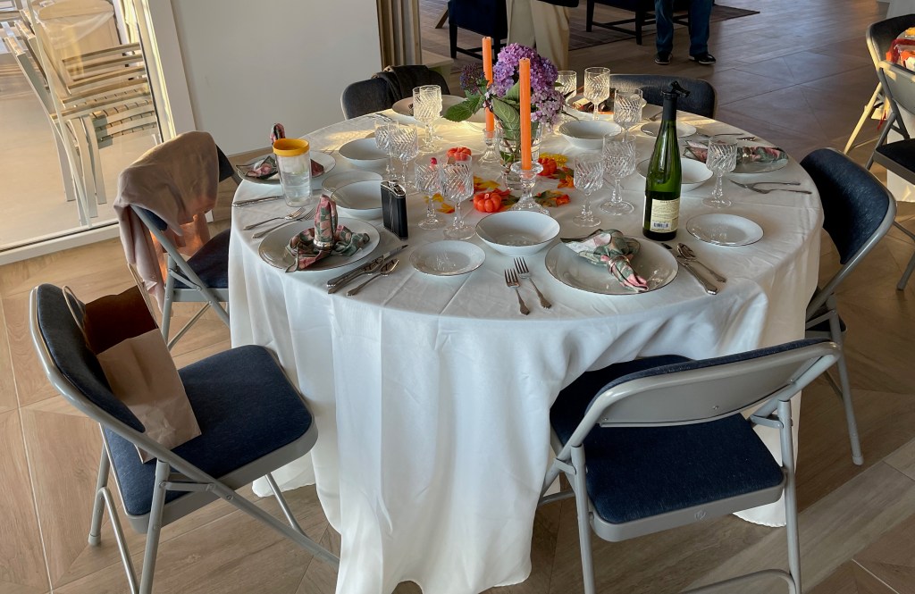 This year 24 of us go together for a Friendsgiving Dinner at our clubhouse. We had a wonderful time and there was lots and lots of good food. I brought the china and crystal, Kitty brought the napkins and napkin rings and Connie brought the candles and flowers