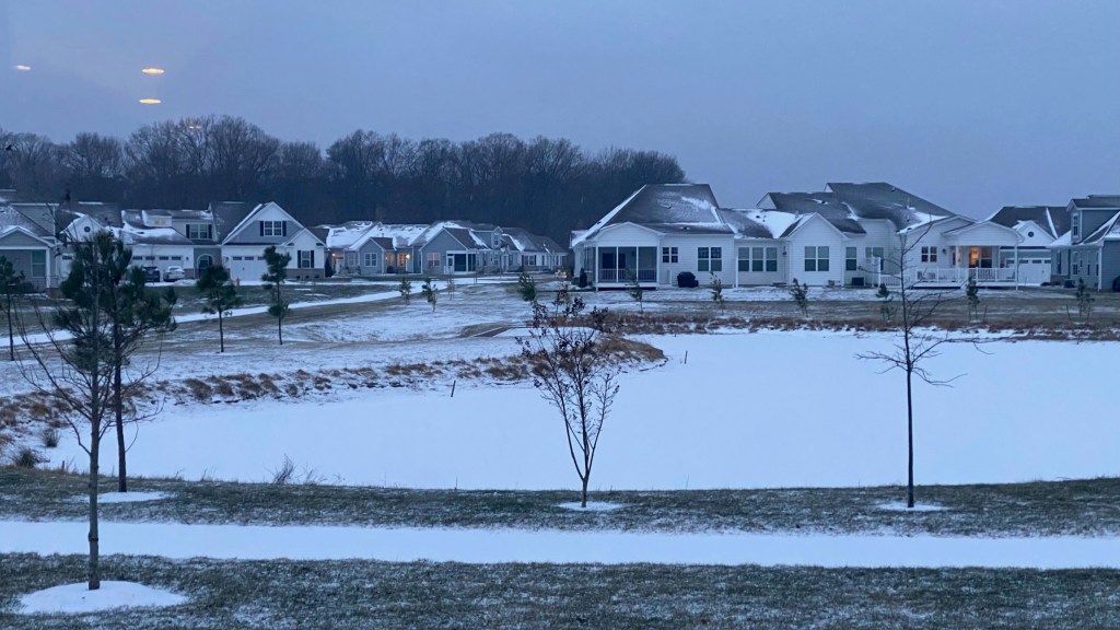 Snow started around 3 but started to taper off at 5 pm. It’s supposed to change to rain soon so had to take a picture before it got dark and rain starts. Not sure what the oval shapes are in the upper left hand corner