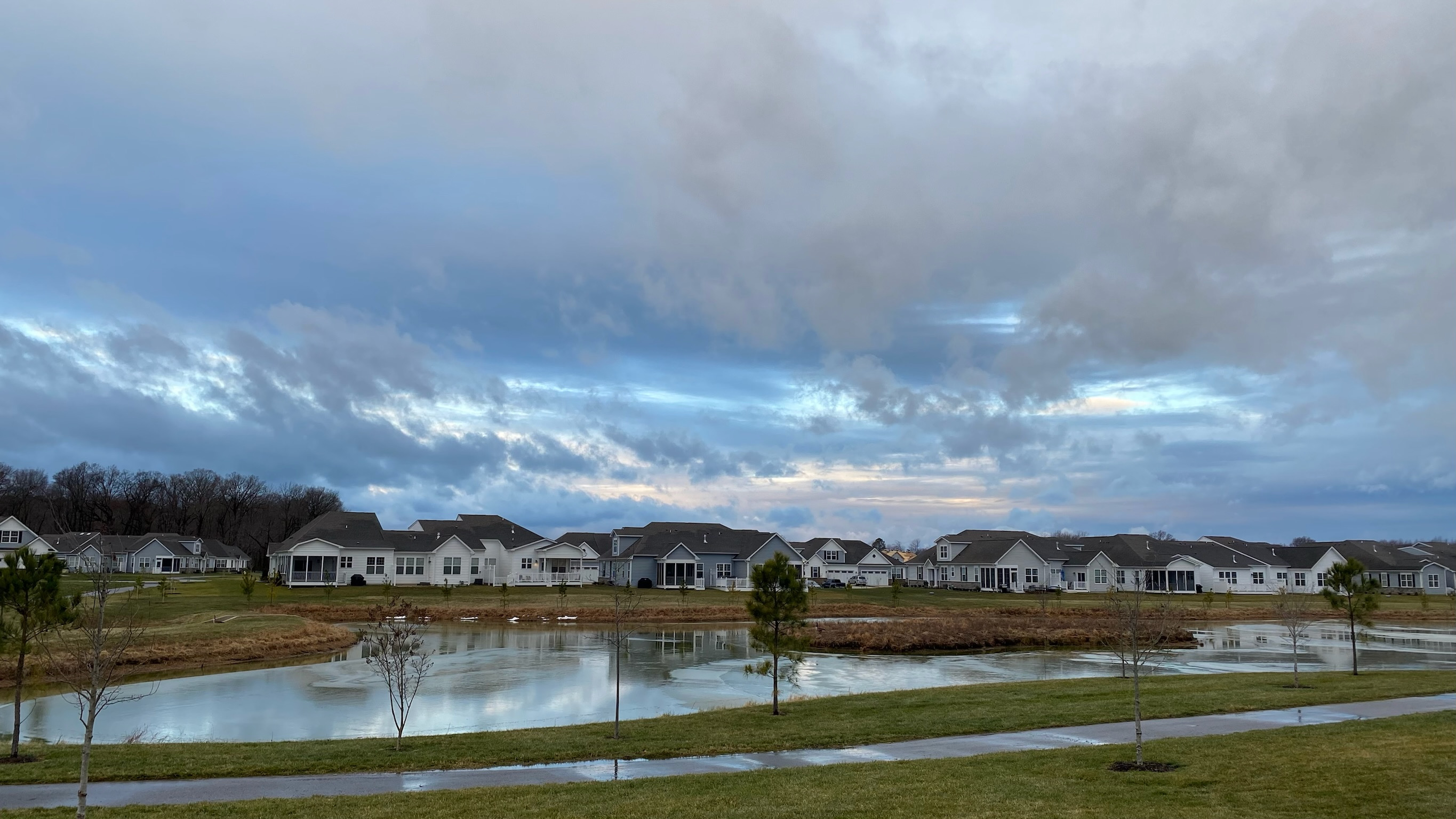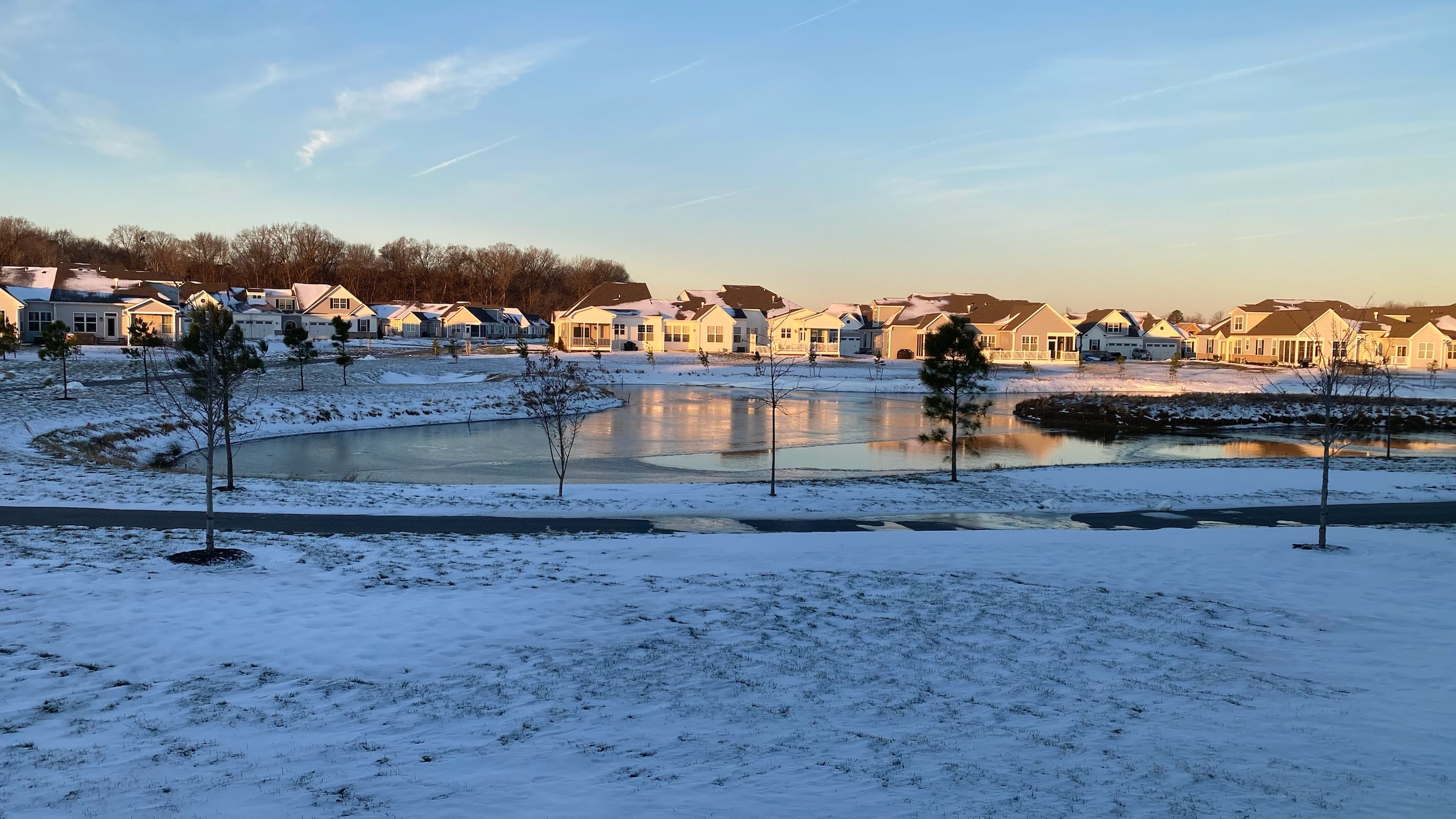 It’s 28 degrees at 5 pm. Ice is starting to form on the pond.