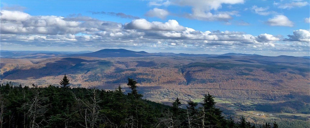 We decided to drive the Mount Equinox Skyline Drive this afternoon. It’s 5.2 miles long and is the longest privately owned paved road in the US. The Green mountains, and the White mountains of New Hampshire can be seen to the east. The Adirondacks of New York are to the west and the Taconic and the Berkshires are to the south