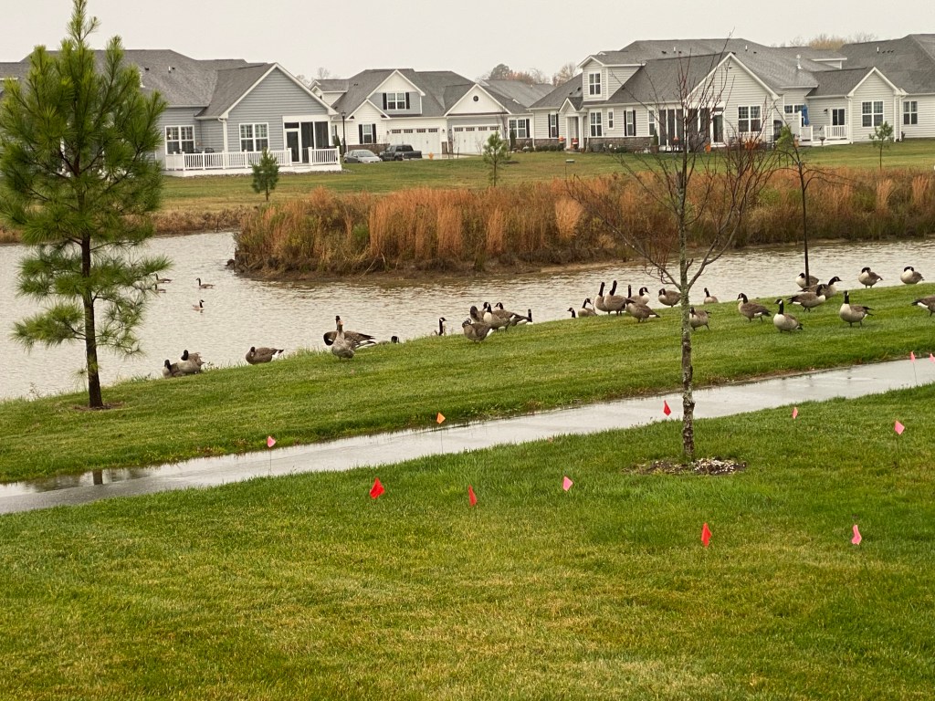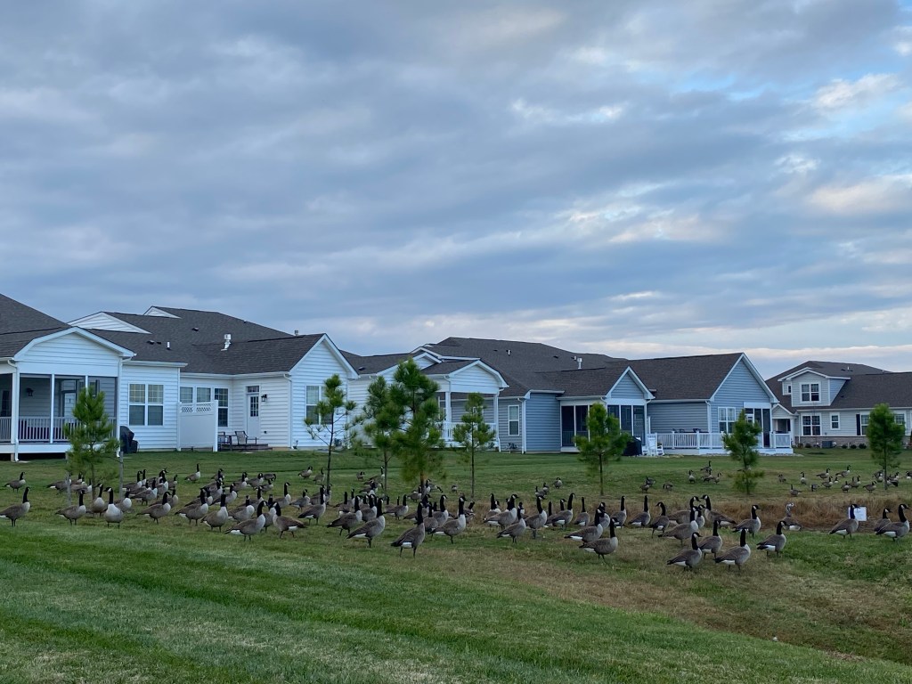 Rainy day today. Took this picture thru the window in sunroom. Surprised so many geese were on land