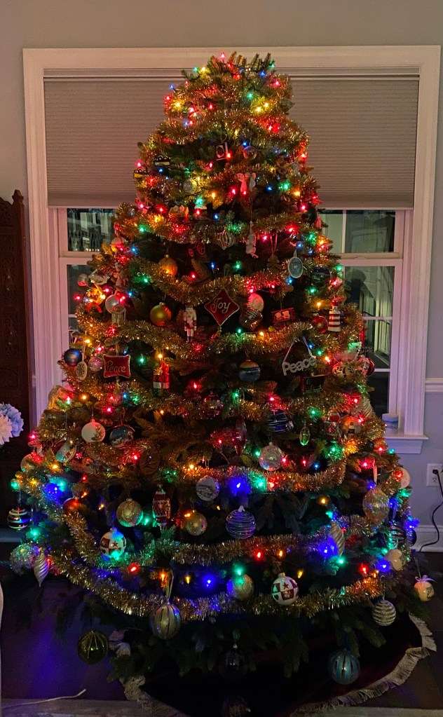 Almost finished decorating Just need to put the star on top but that means moving the truck to get to the ladder.