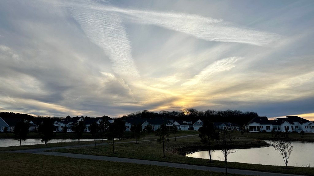 Sunday afternoon sky. Just got back from our walk and checked and it’s 52 degrees and just a few days ago temperatures were in the teens