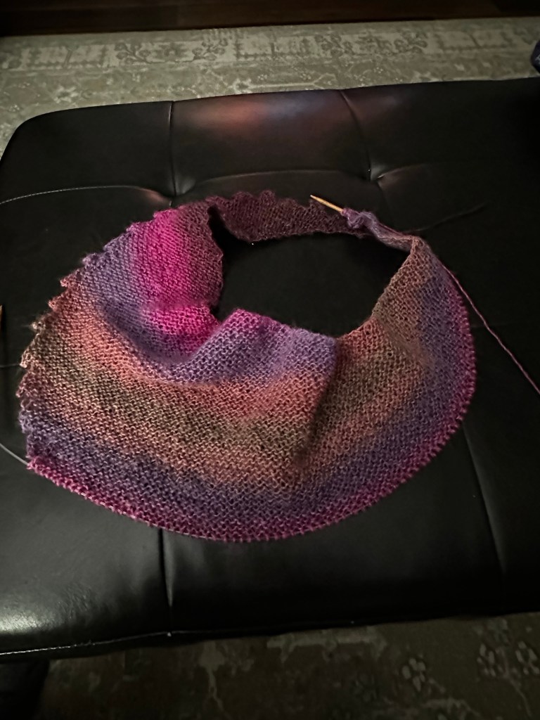 Working on another charity scarf. It’s amazing how this yarn is self striping