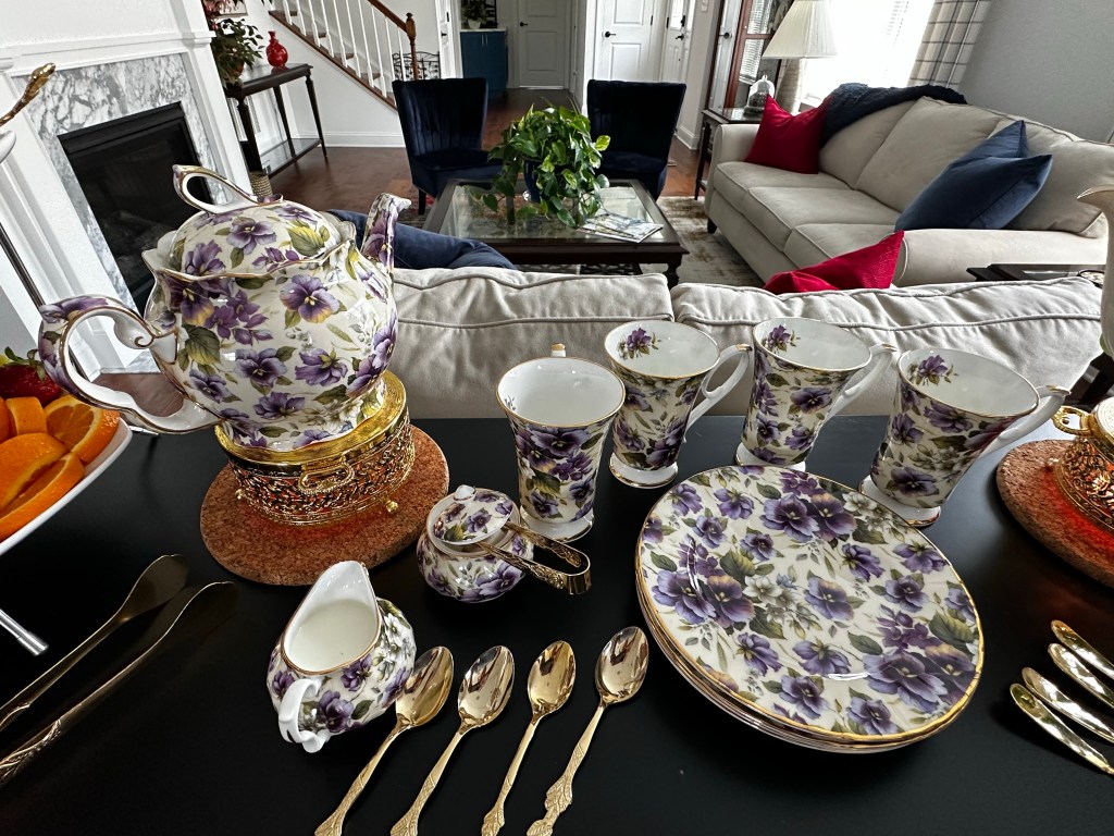 One of my friends invited me over for some tea and knitting. She did a great job. Loved the dishes and the food was delicious. I think it’s the first time I had clotted cream