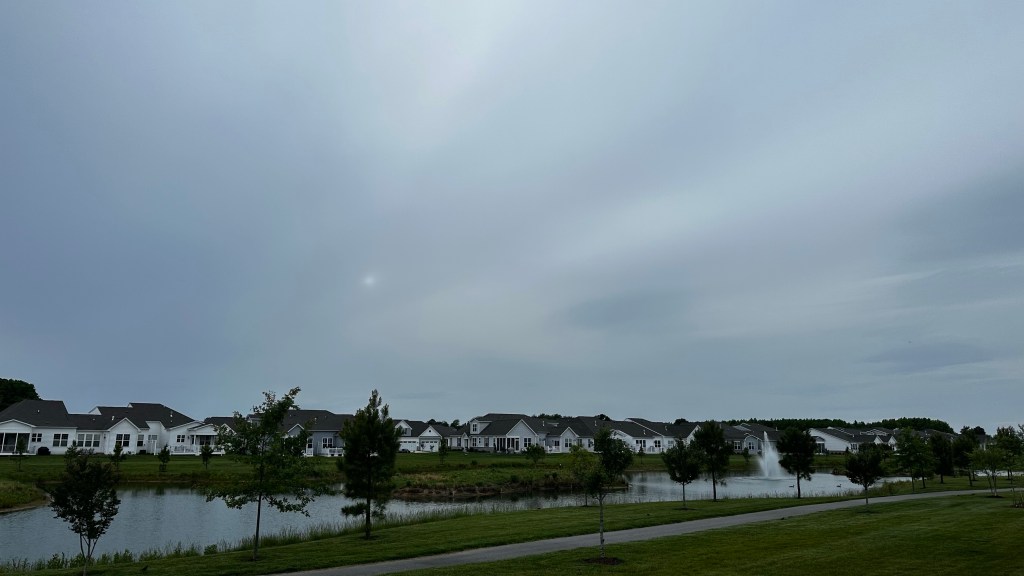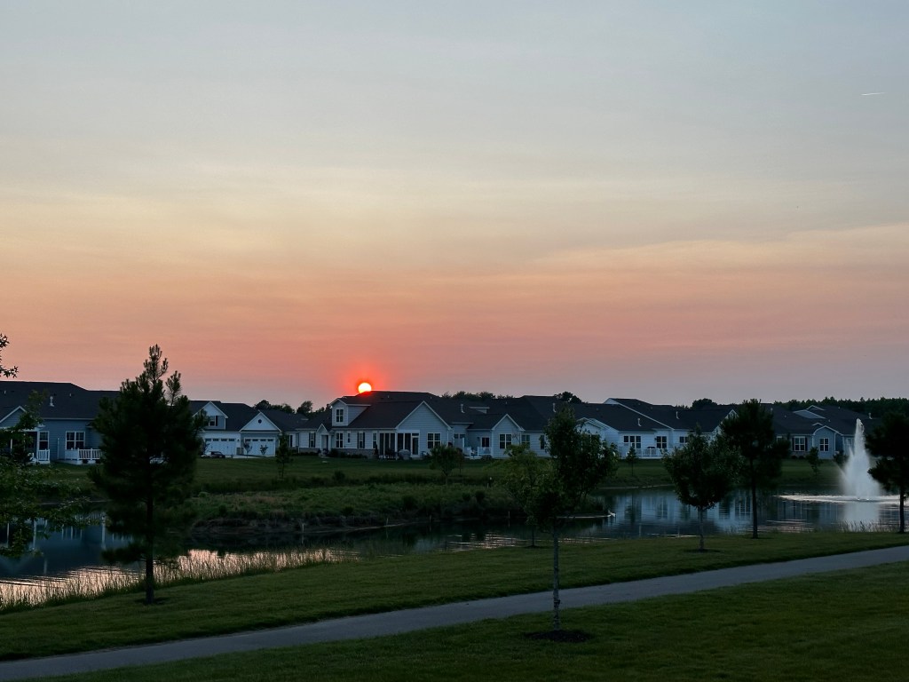 Went out to check on the sky and noticed the sun setting between two houses. We have lived here over 5 years and I have never seen this before.