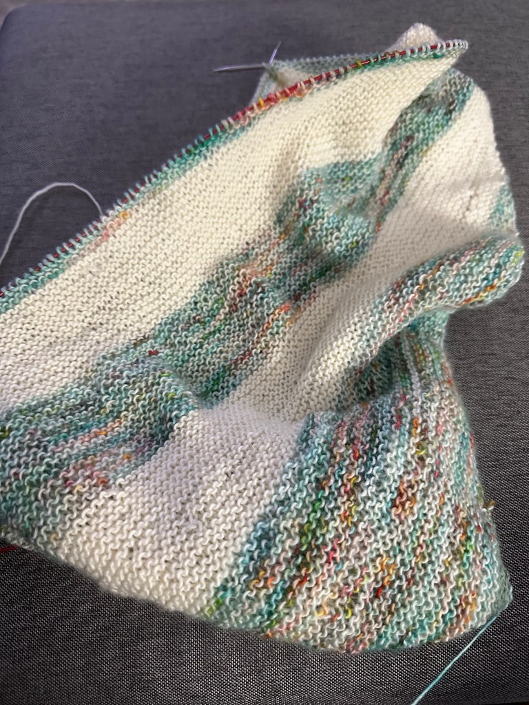 Monthly knitting guild meeting tonight so I didn’t get a sunset picture. Here’s my latest scarf I am knitting for charity