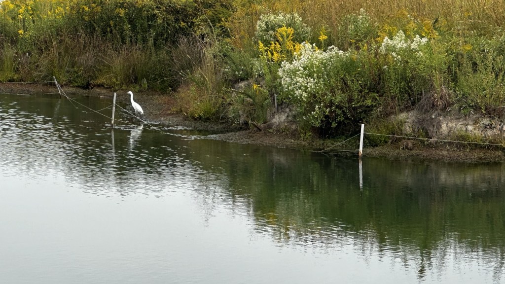 Later in the morning I noticed an egret by the pond so decided to try snd get some photos. He looks smaller than Eddie.