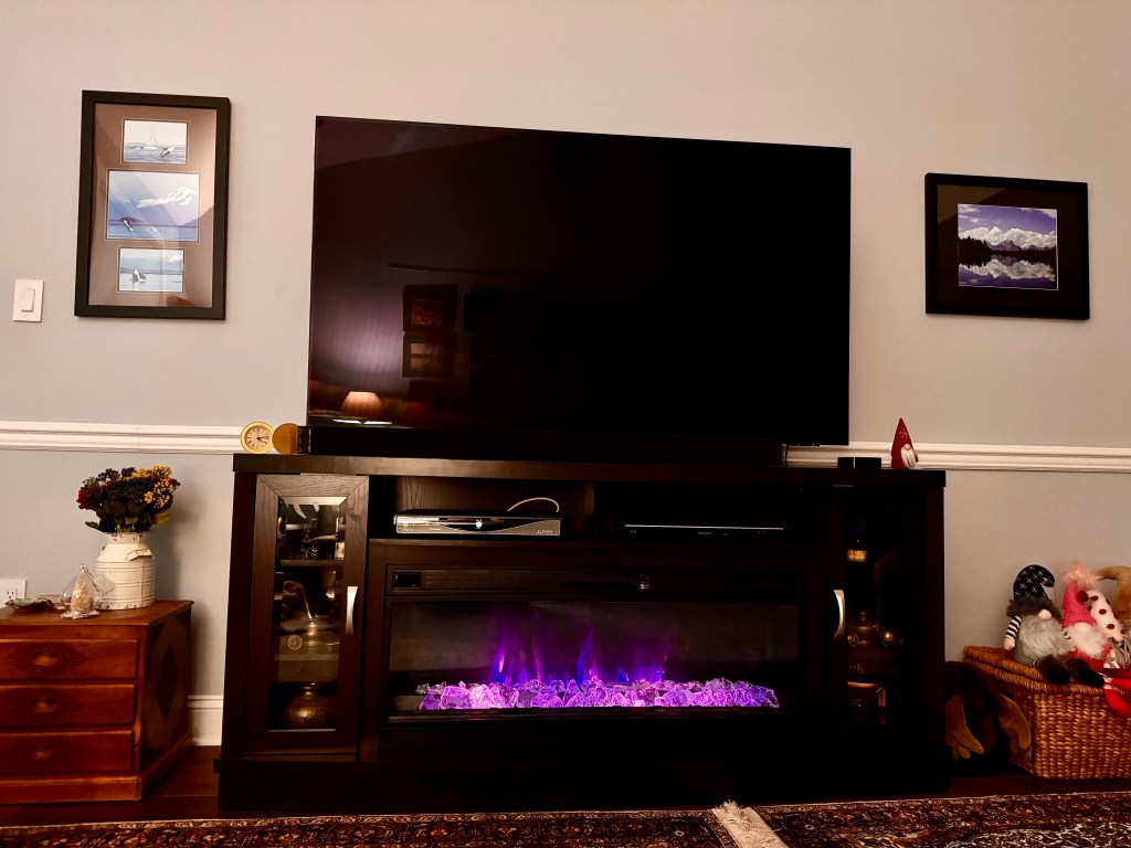 Rainy damp day so it’s a good time to turn on the fireplace and curl up with a good book