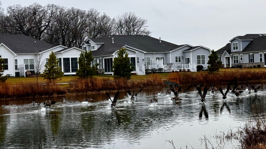 Lots of geese this morning at the other pond and I was lucky enough to capture them taking off