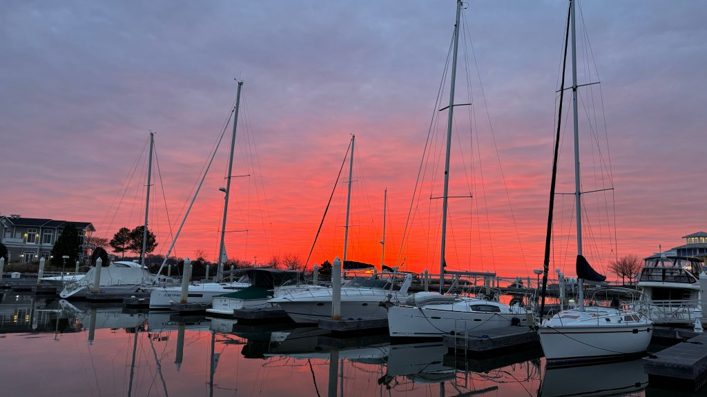 Was out running errands and on way home noticed some pink in sky so decided to head over to marina. So happy I did. We moved to eastern shore almost 6 years ago and the sunrises and sunsets continue to smaz