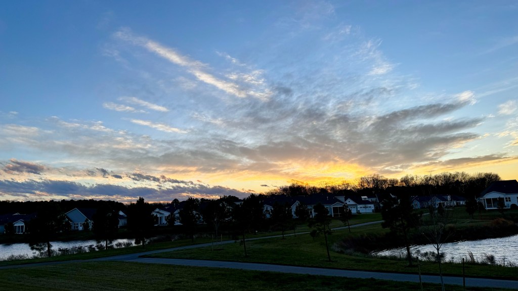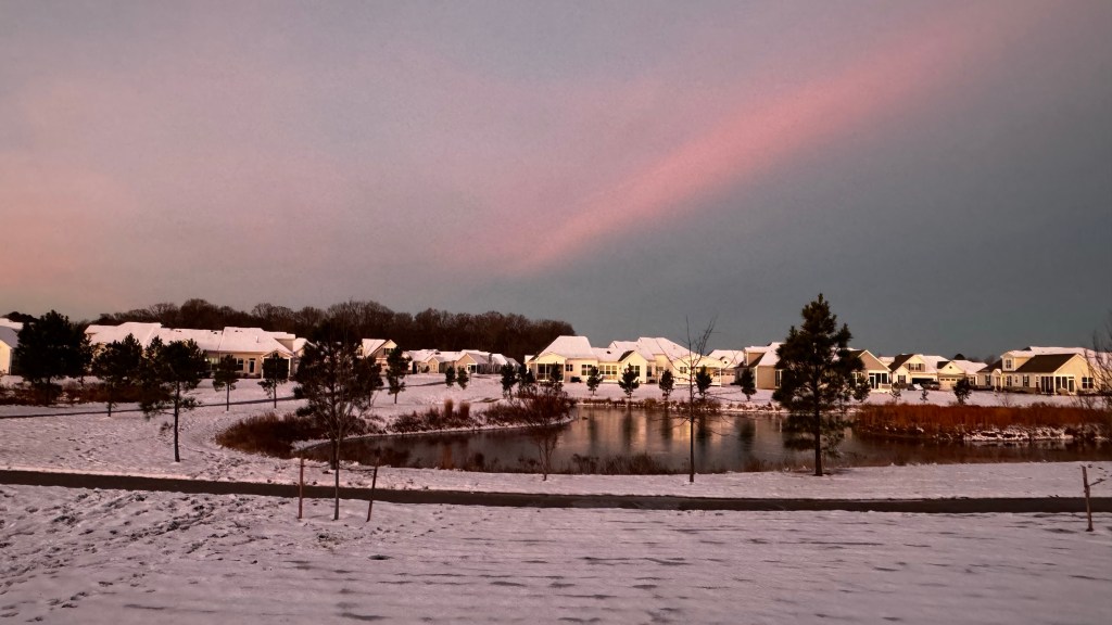 Sunday sunset. There was supposed to be some snow showers today but didn’t see any. Possible snow on Tuesday. And Friday.