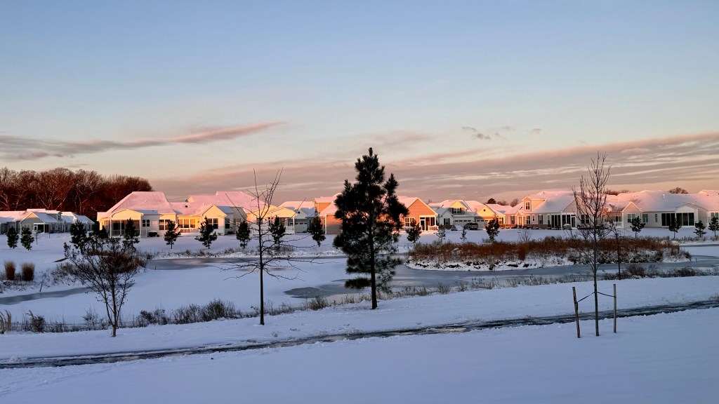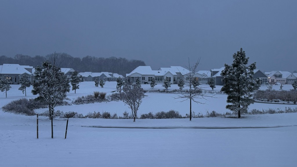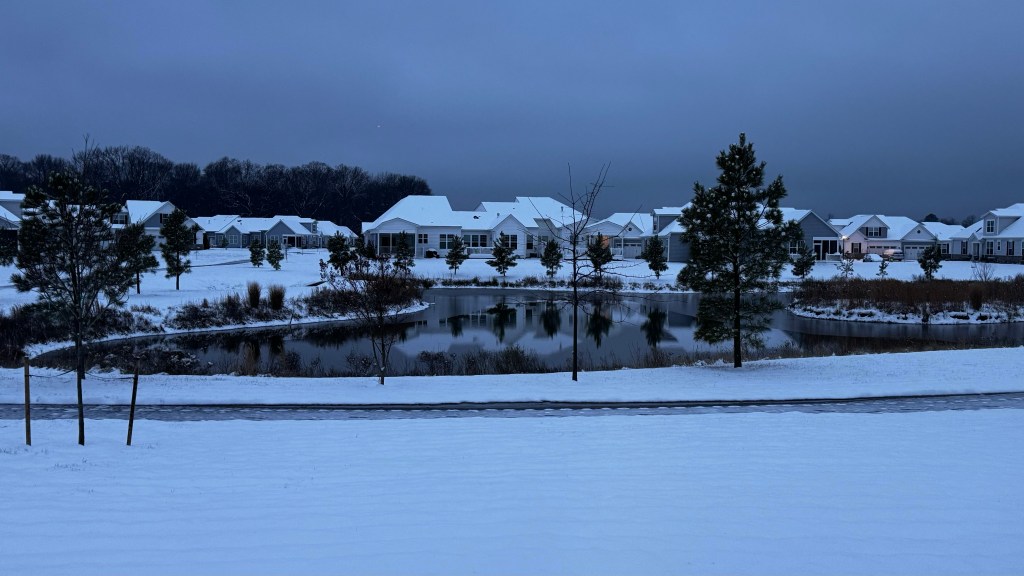 We had to wait two years for snow and we had two snow storms this week. It’s 23 degrees this morning but by Thursday it’s going to be 50 degrees with rain.