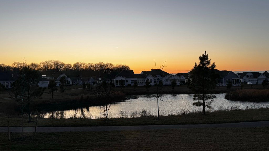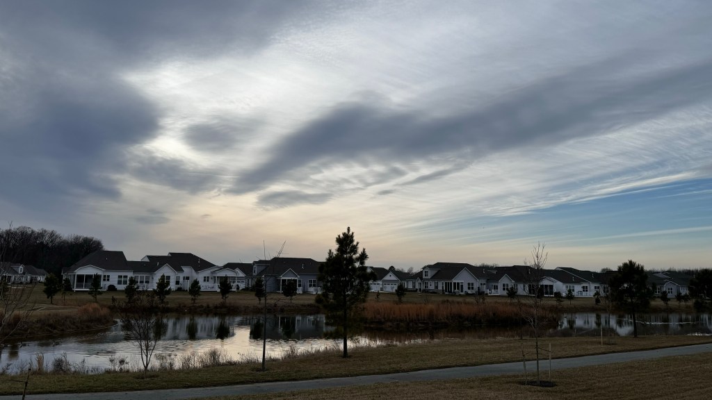 Tonight’s sky. Almost missed this since the clouds were to the left of our home over the other pond