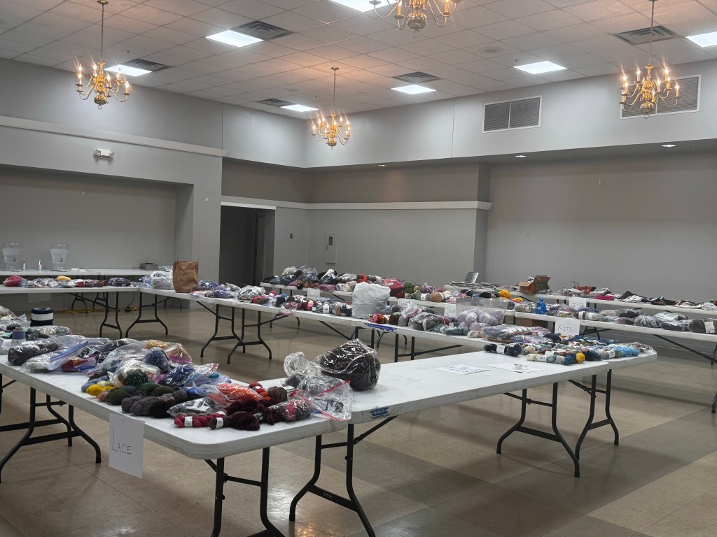 The annual yarn swap. I only took one skein of yarn and two scarf kits