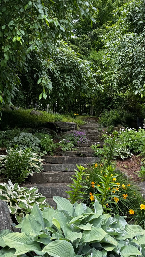 Last day in Stowe. Did two loads of wash. Went to farmers market and bought some maple caramel bourbon popcorn. Then we spent afternoon relaxing outside by the gardens. It was another beautiful day. Wish rest of our trip it would be this nice but heat wave is on its way