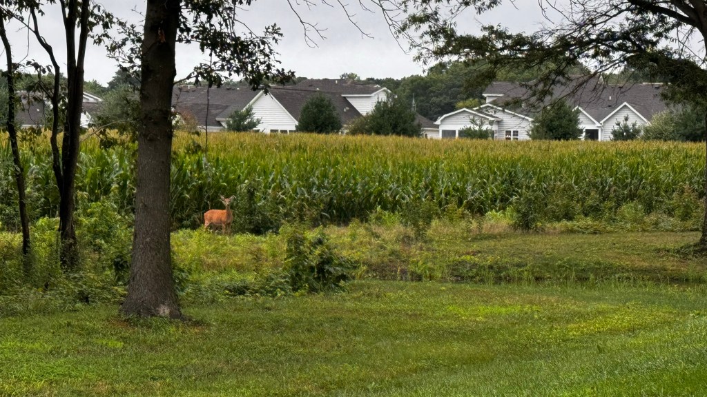 Another hot humid day. Spotted Hank on our morning walk. Could not get a good clear shot